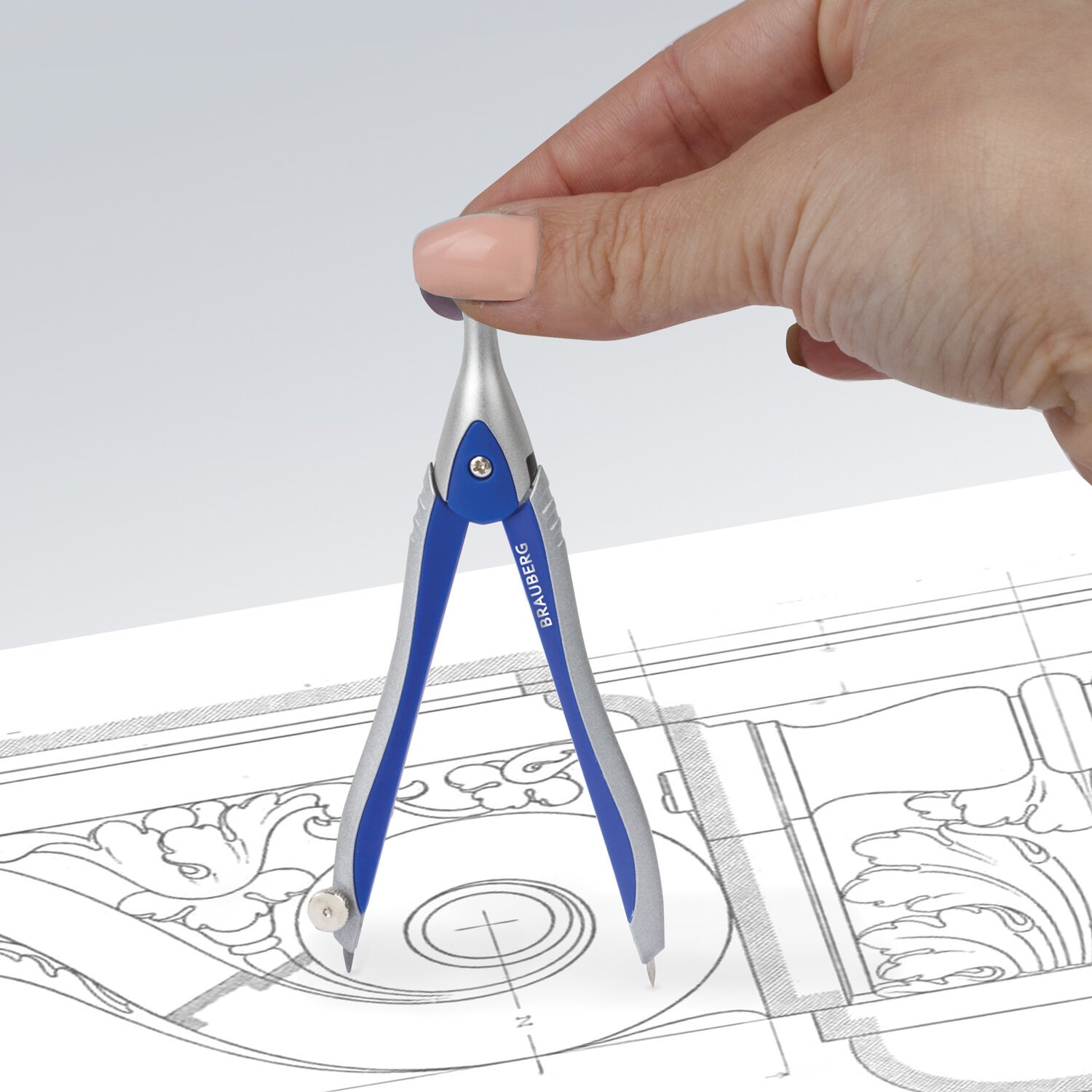 Готовальня BRAUBERG "Klasse", 3 предмета: циркуль 115 мм с колпачком, грифель, точилка, пенал с подвесом, 210330