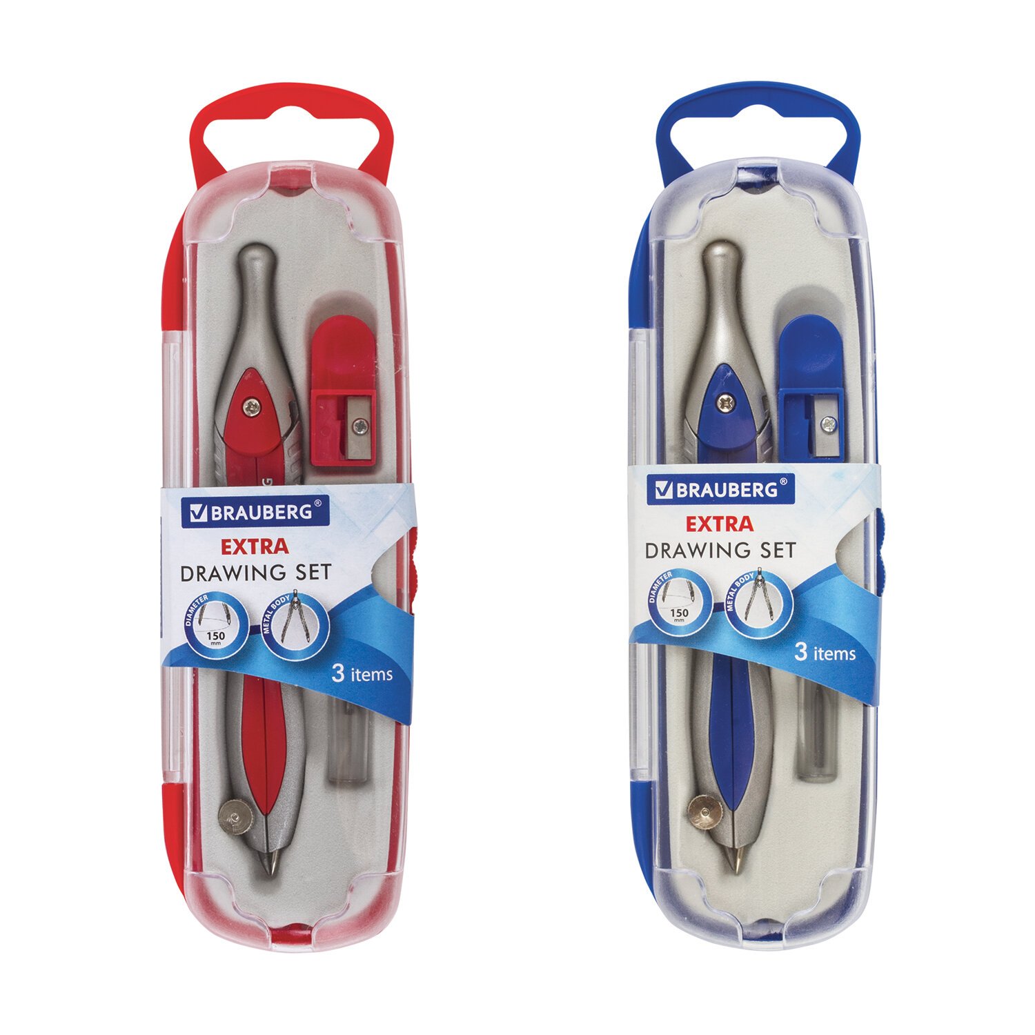 Готовальня BRAUBERG "Extra" предназначена для школьников всех возрастов и студентов на уроках черчения и геометрии.
