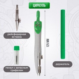 Готовальня ПИФАГОР, 2 предмета: циркуль 120 мм, запасные грифели, пенал, ассорти, 210861