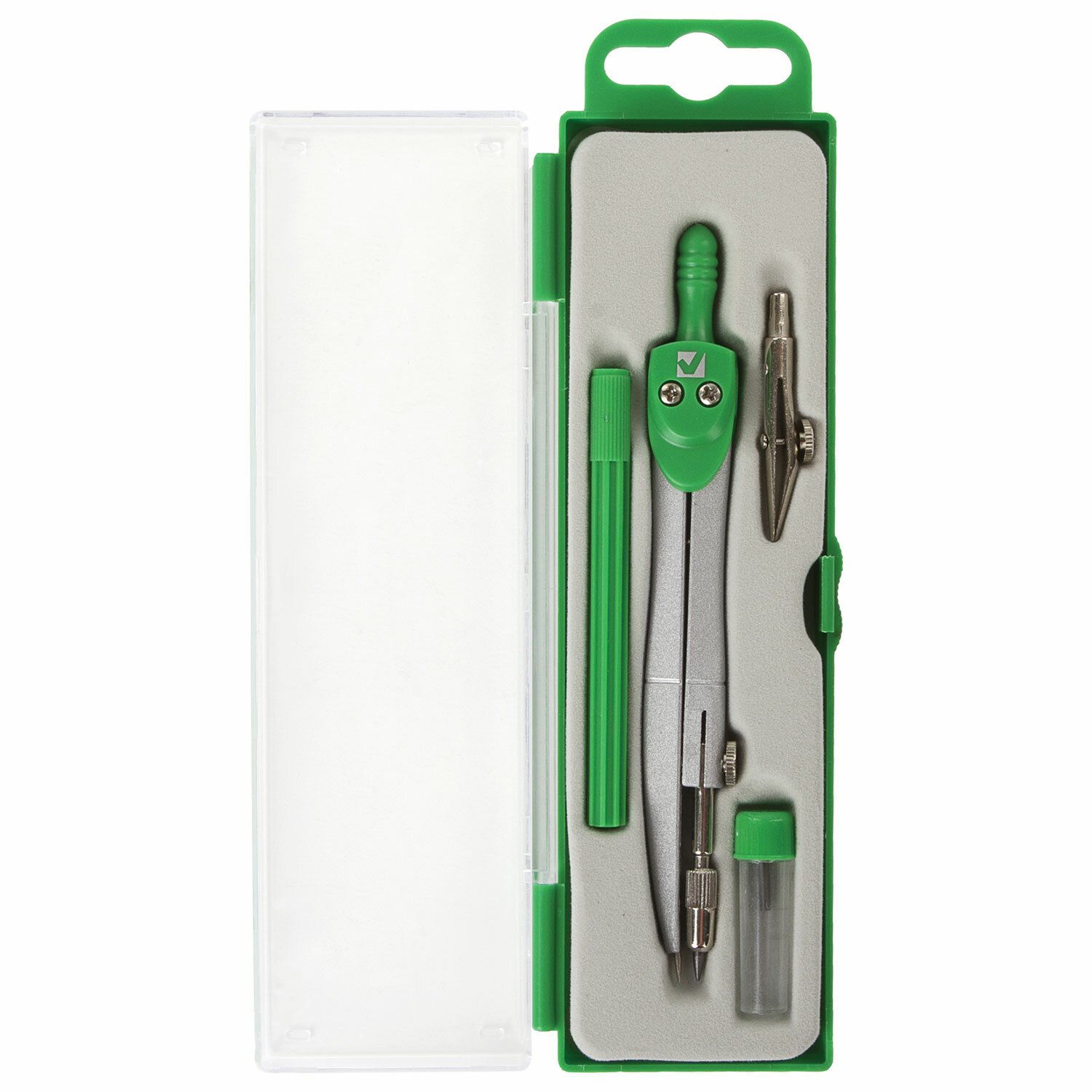 Готовальня BRAUBERG "Klasse", 2 предмета: циркуль 125 мм + колпачок, грифель, пенал с подвесом, 210320