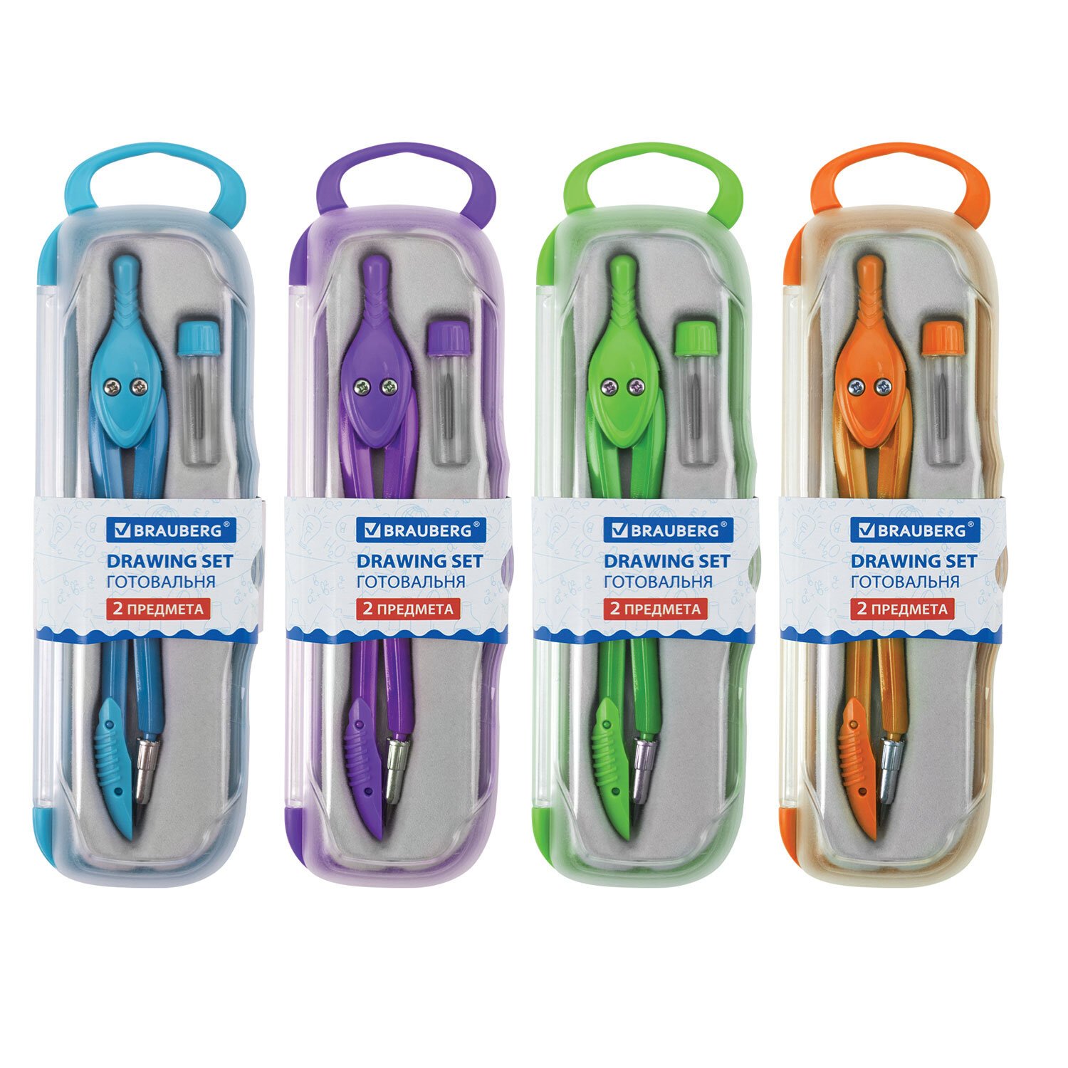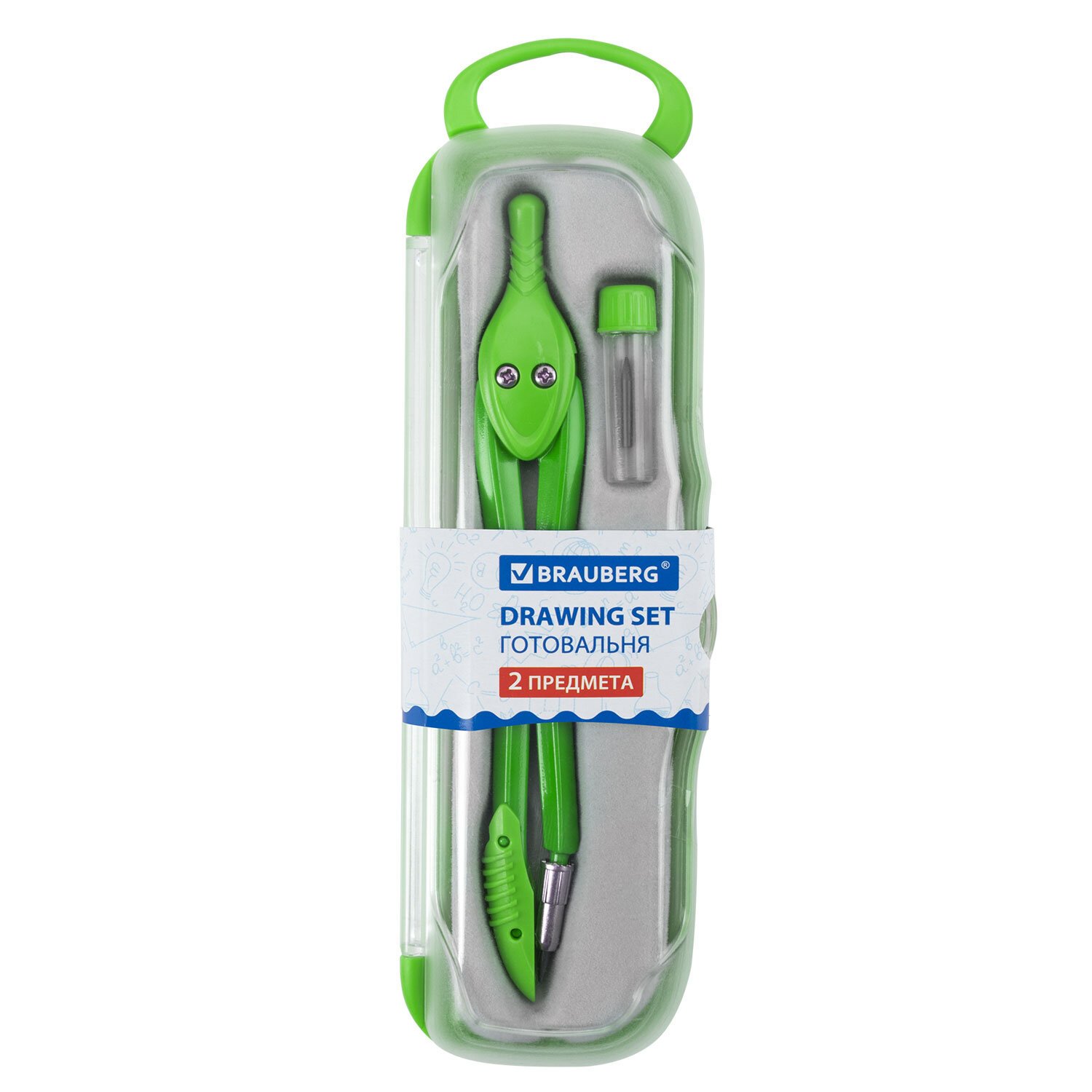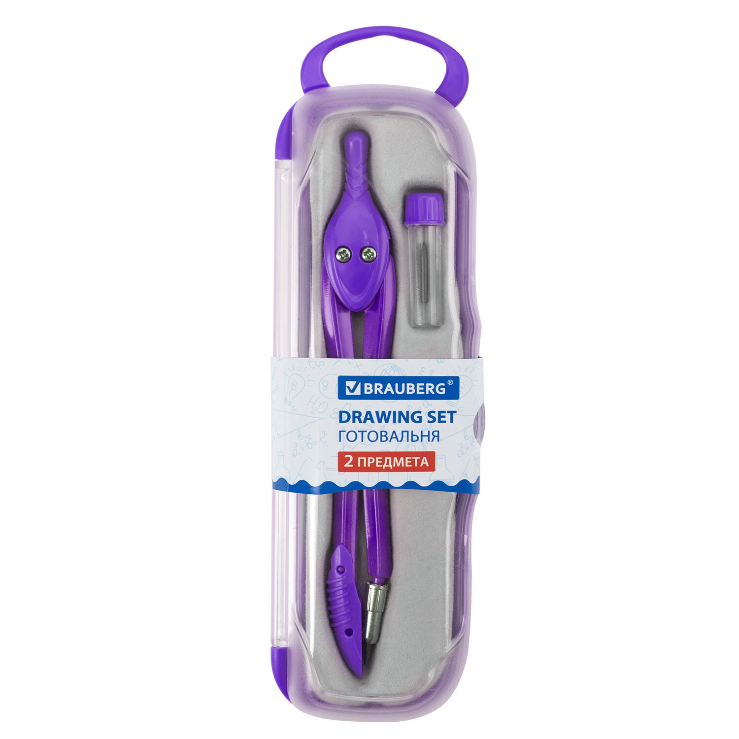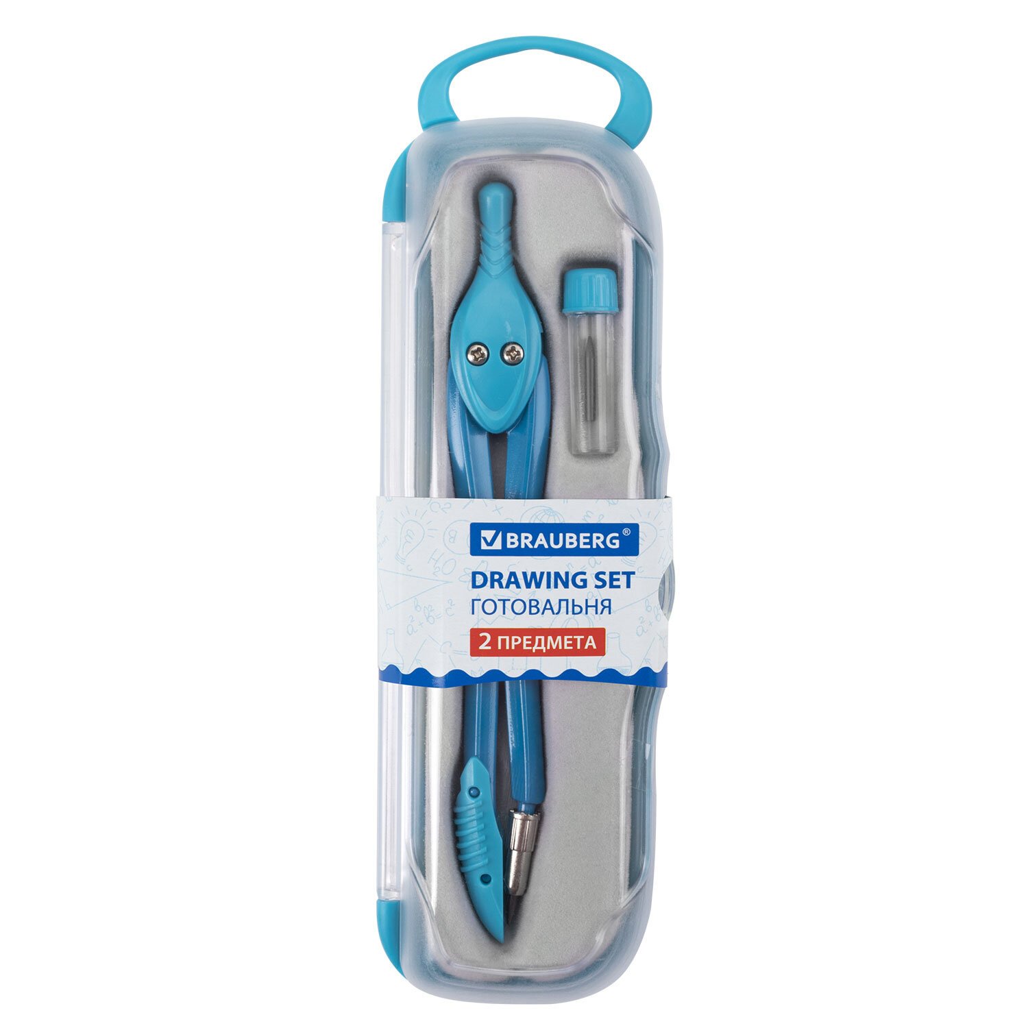 Готовальня BRAUBERG "Klasse", 2 предмета: циркуль 125 мм + колпачок, грифель, пенал с подвесом, 210320