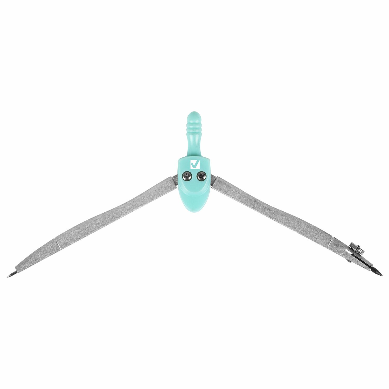 Циркуль имеет несгибаемые штанги. Изготовлен из металла, дополнительный цвет элементов – мятный.