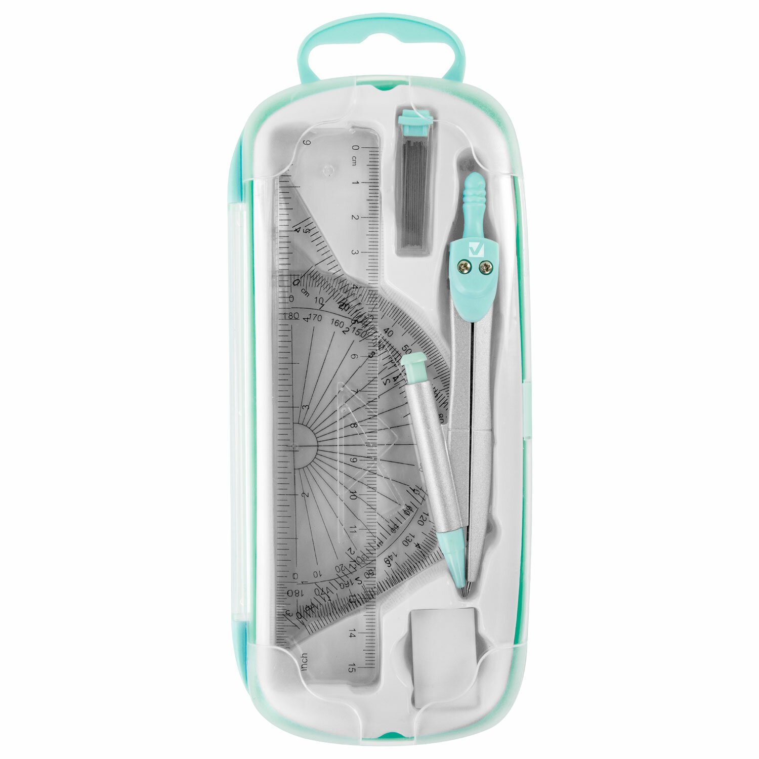 Готовальня BRAUBERG SCHOOL KIT, 9 предметов, циркуль 125 мм, чертежные принадлежности, мятный цвет, 210716
