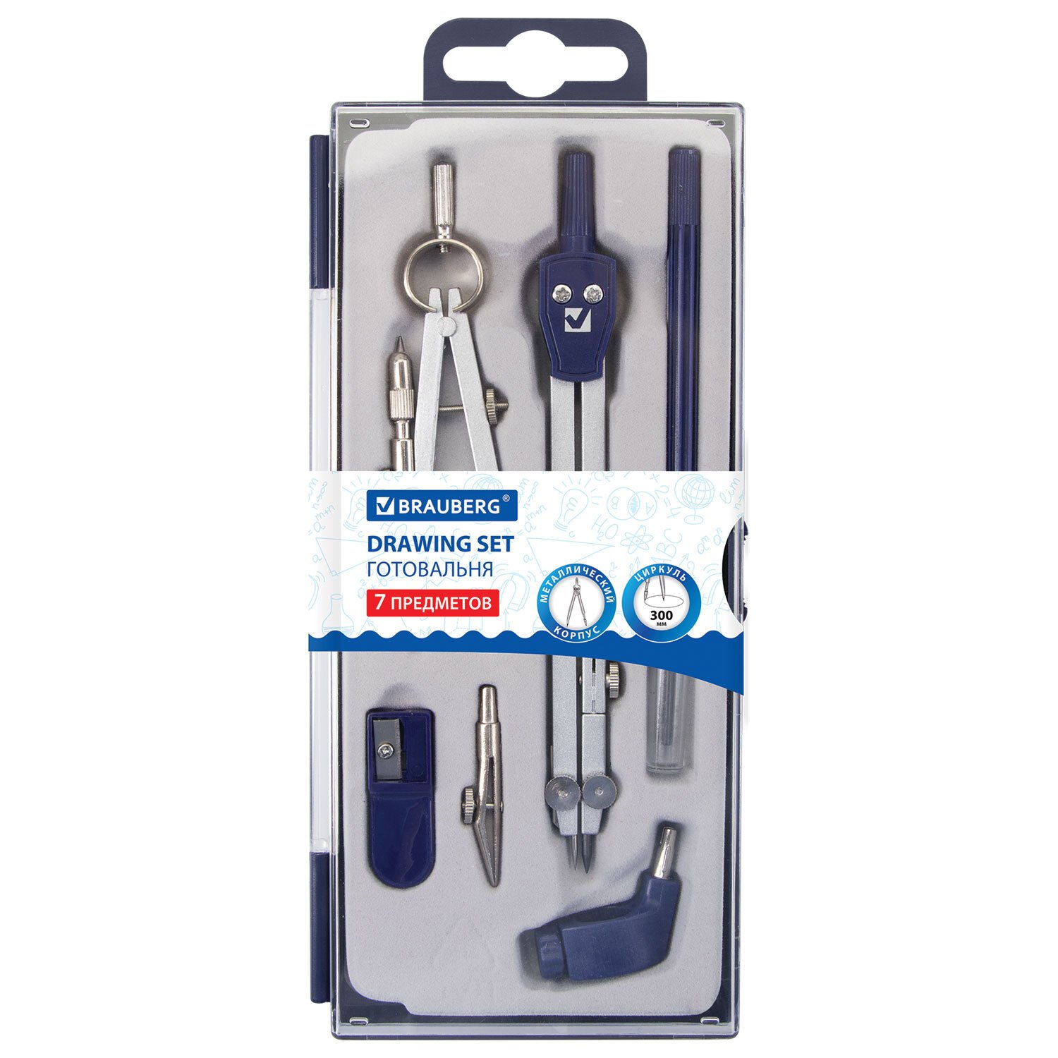 Готовальня BRAUBERG "Student Oxford", 7 предметов: наполнение-1, пенал с подвесом, 210347