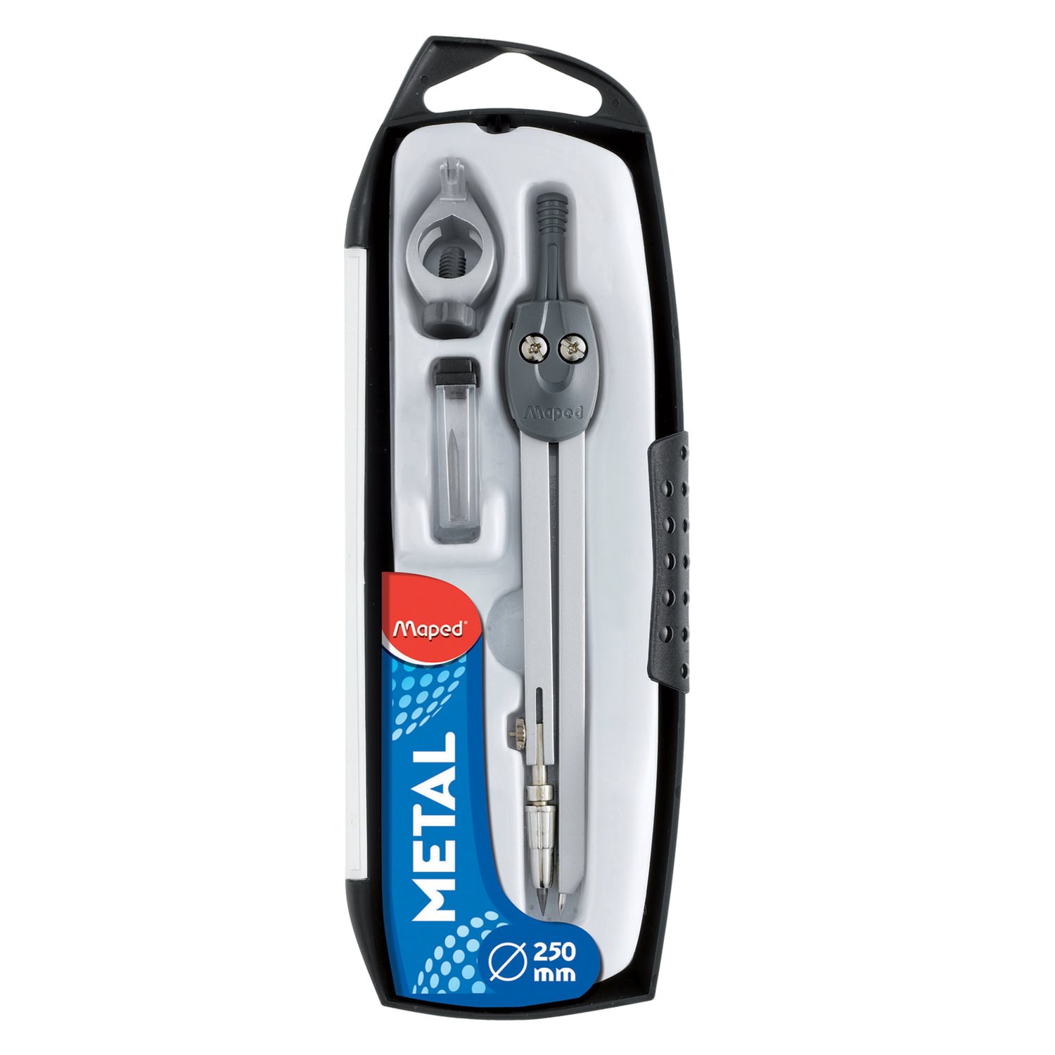Готовальня MAPED (Франция) "Stop System", 3 предмета, ударопрочный пенал с европодвесом, 196100