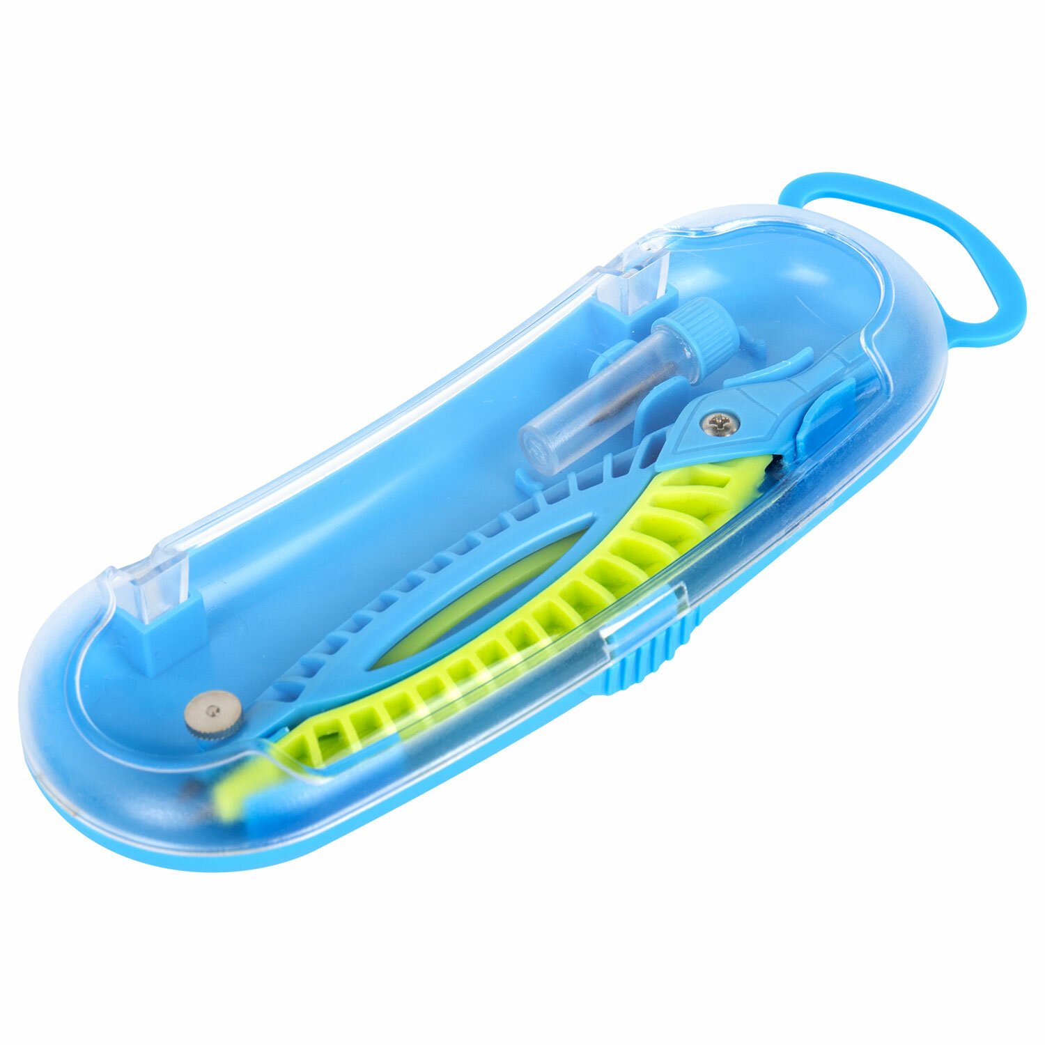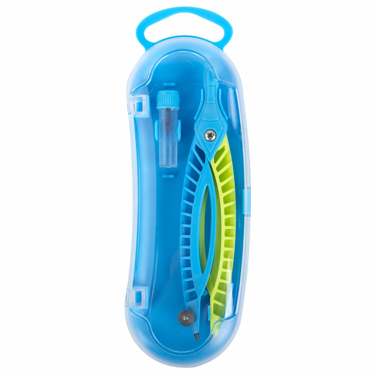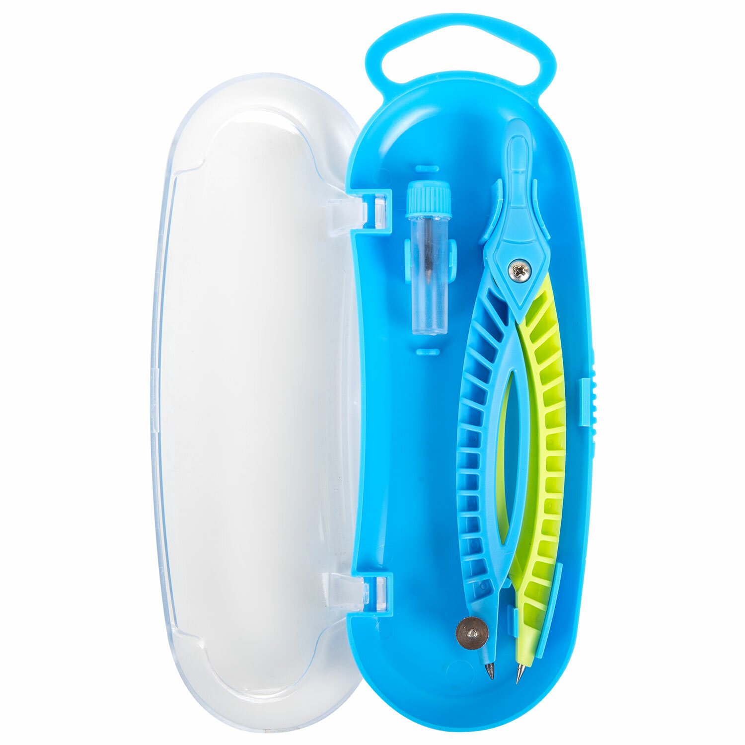 Пластиковая готовальня ЮНЛАНДИЯ предназначена для учеников младших и средних классов. Она поможет детям ознакомиться с азами черчения.