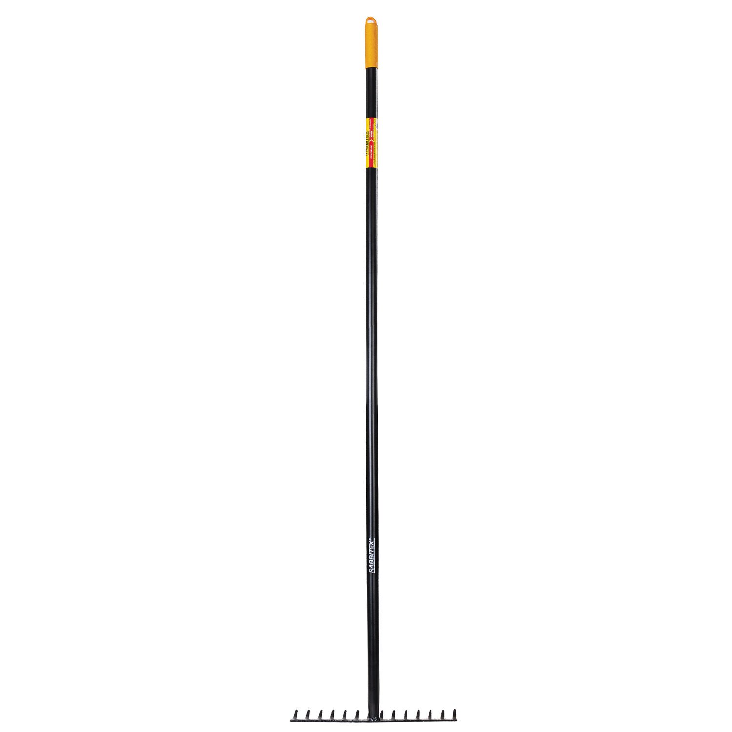 Максимальная надежность обеспечивается цельной конструкцией из стали, прошедшей специальную закалку. Инструмент способен выдержать любые нагрузки при длительной работе без потери прочности. Грабли оснащены 14 острыми стальными зубьями, расположенными на оптимальном расстоянии друг от друга, для наиболее эффективной работы с любыми материалами.