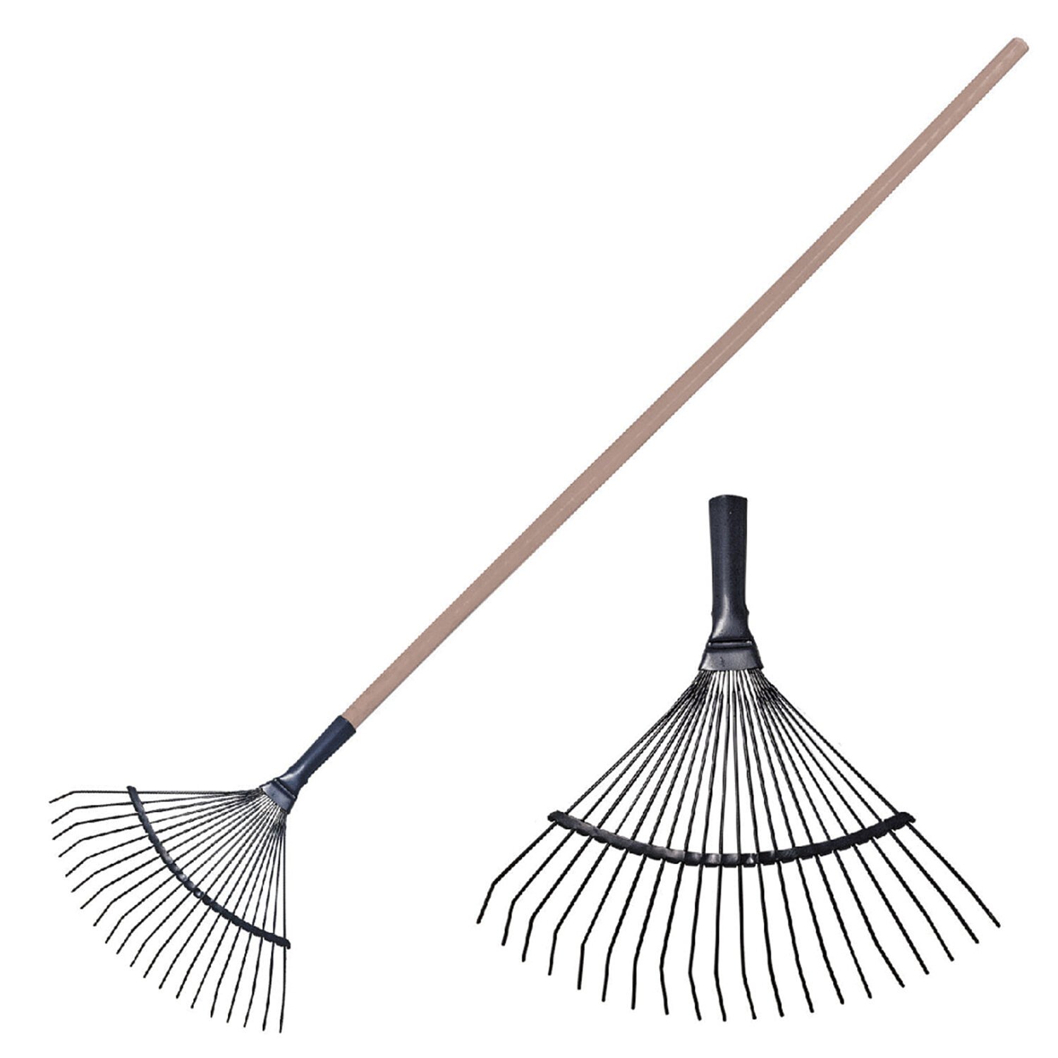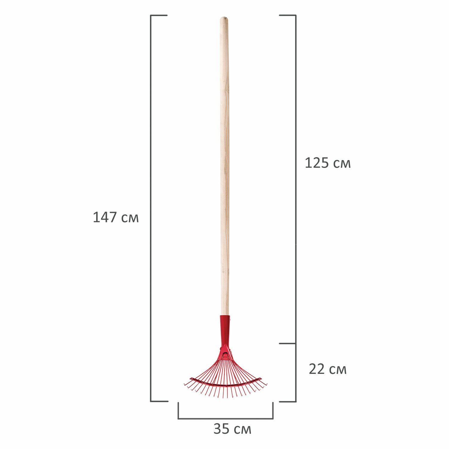 Грабли веерные проволочные, 20 зубьев, ширина 35 см, деревянный черенок 120 см, КМ000881