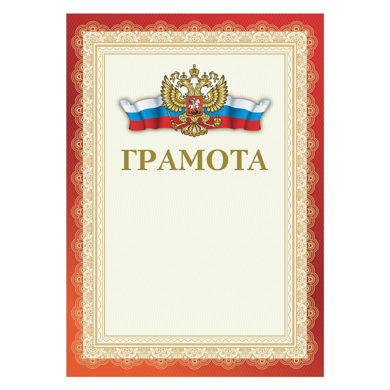 Грамота А4, мелованный картон, конгрев, тиснение фольгой, красная, BRAUBERG, 117531