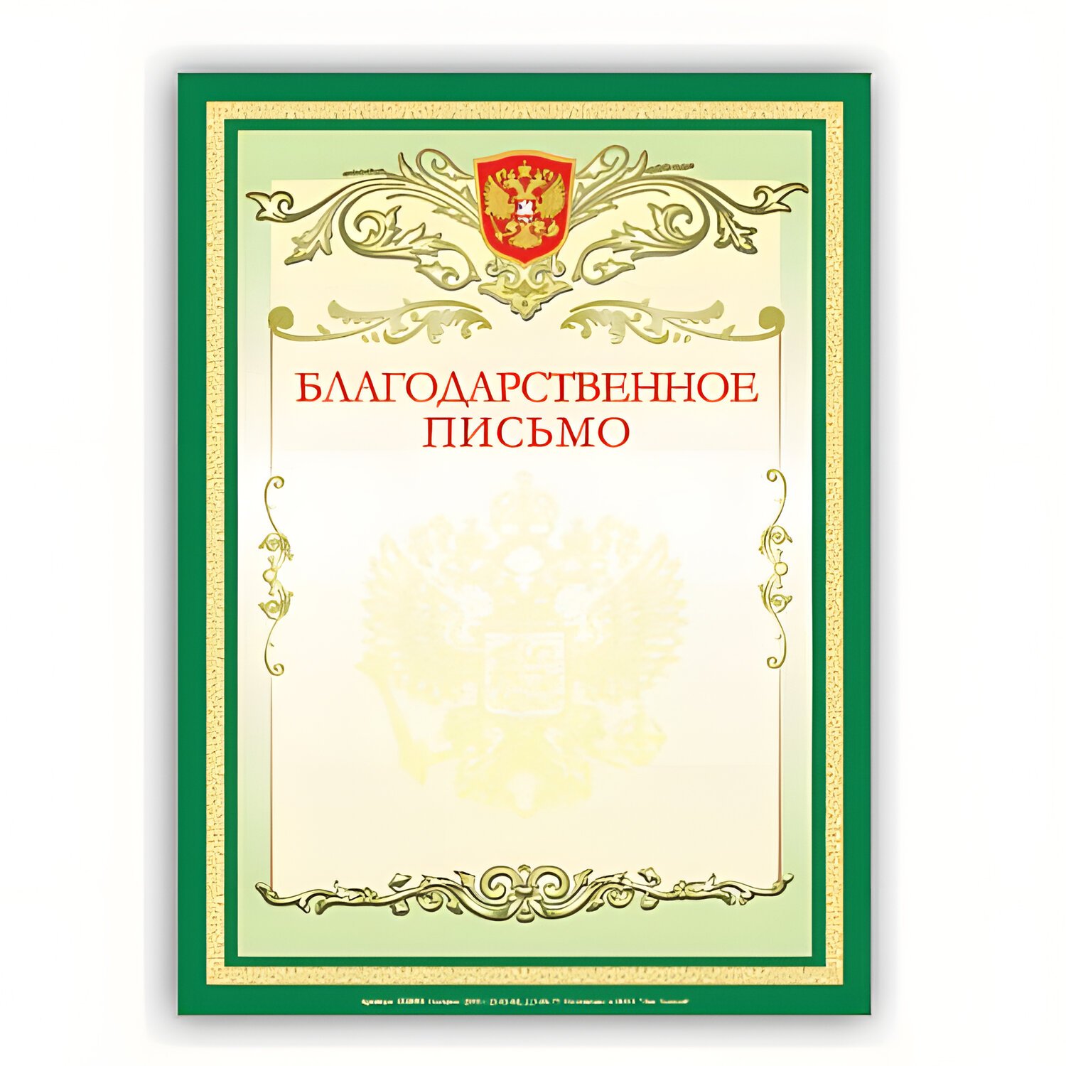 Благодарственное письмо с изображением российской символики.