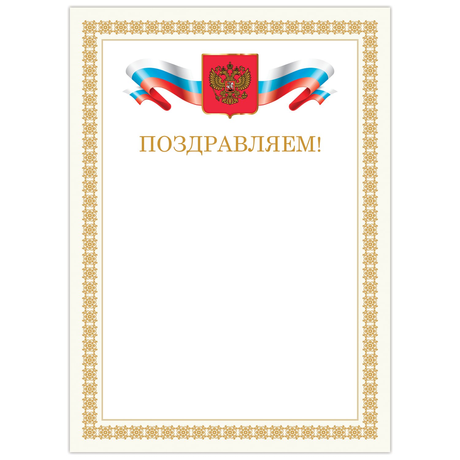 Грамота "Поздравляем", А4, мелованный картон, бронза, бежевая рамка, BRAUBERG, 128365