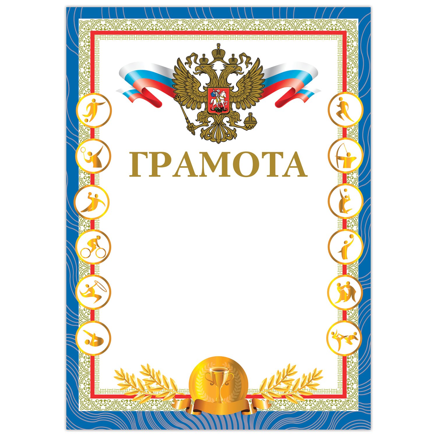 Грамота со спортивной символикой имеет сбалансированную цветовую гамму в сочетании с высококачественным импортным мелованным картоном.