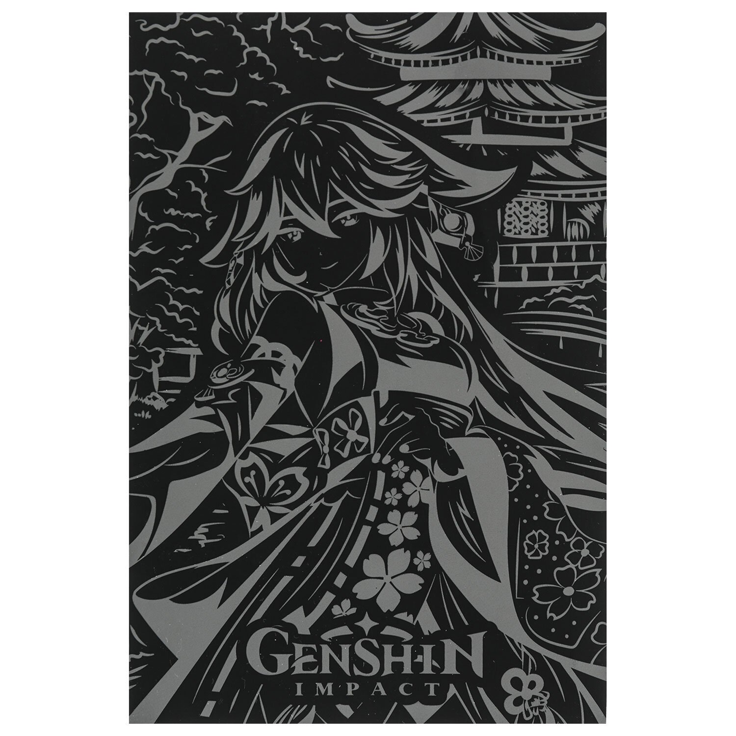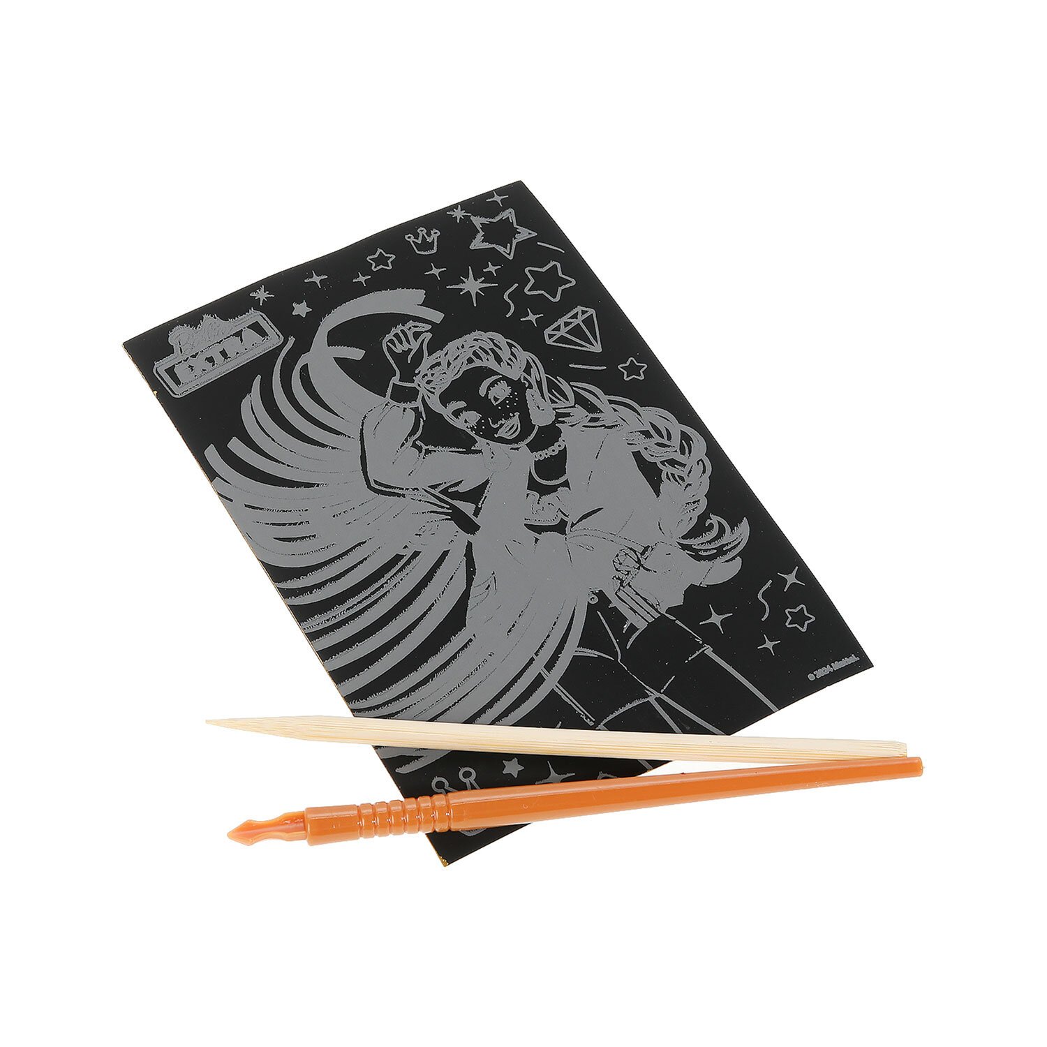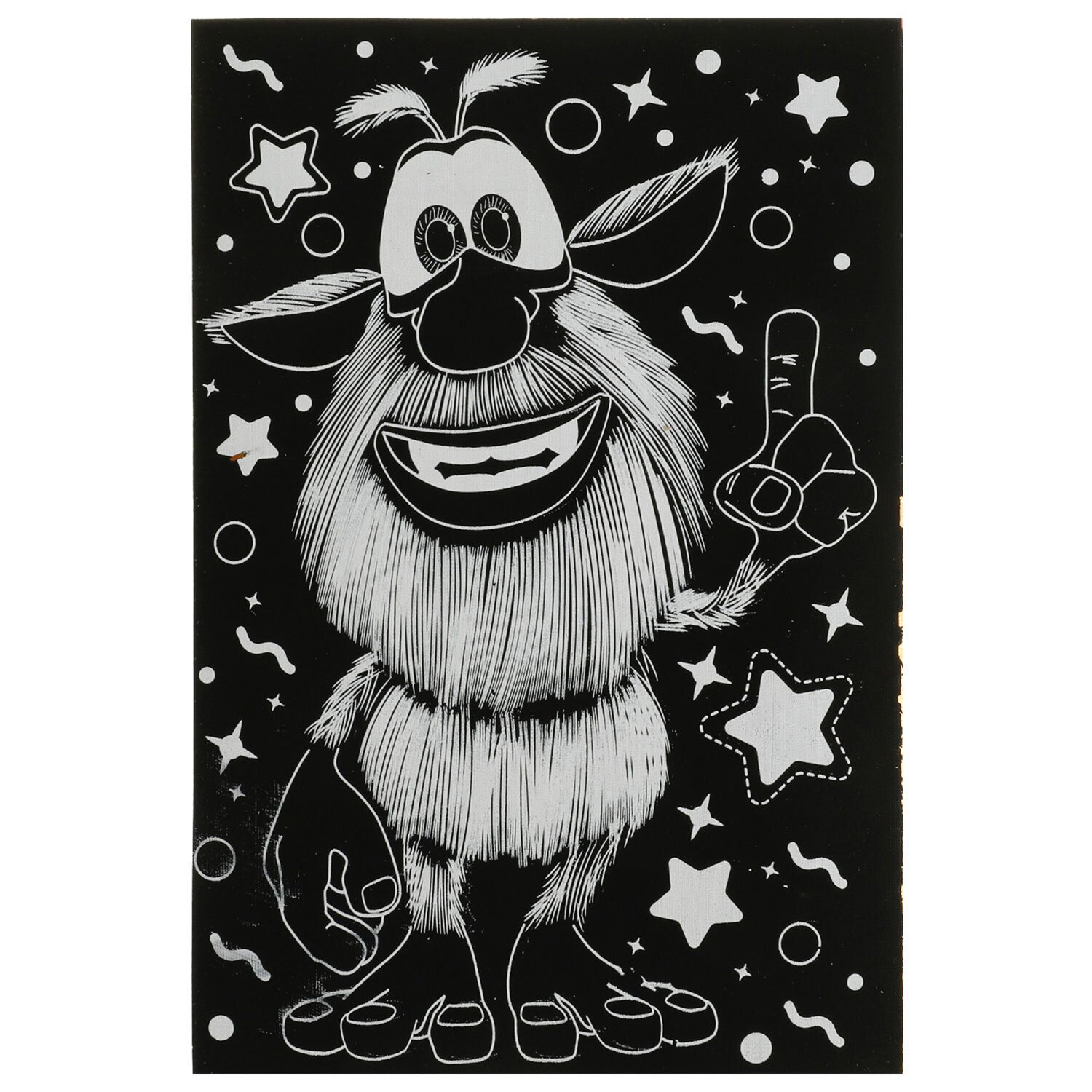 Контур рисунка уже нанесен на черный фон. С помощью специального штихеля изображение процарапывается, и из-под слоя краски появляется основа (золотая, серебряная, голографическая). В результате получается контрастный рисунок. Набор содержит все необходимое для создания оригинальной картины: основу с контуром, штихель, инструкцию.