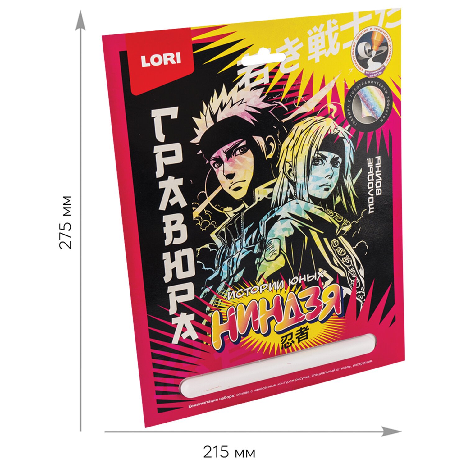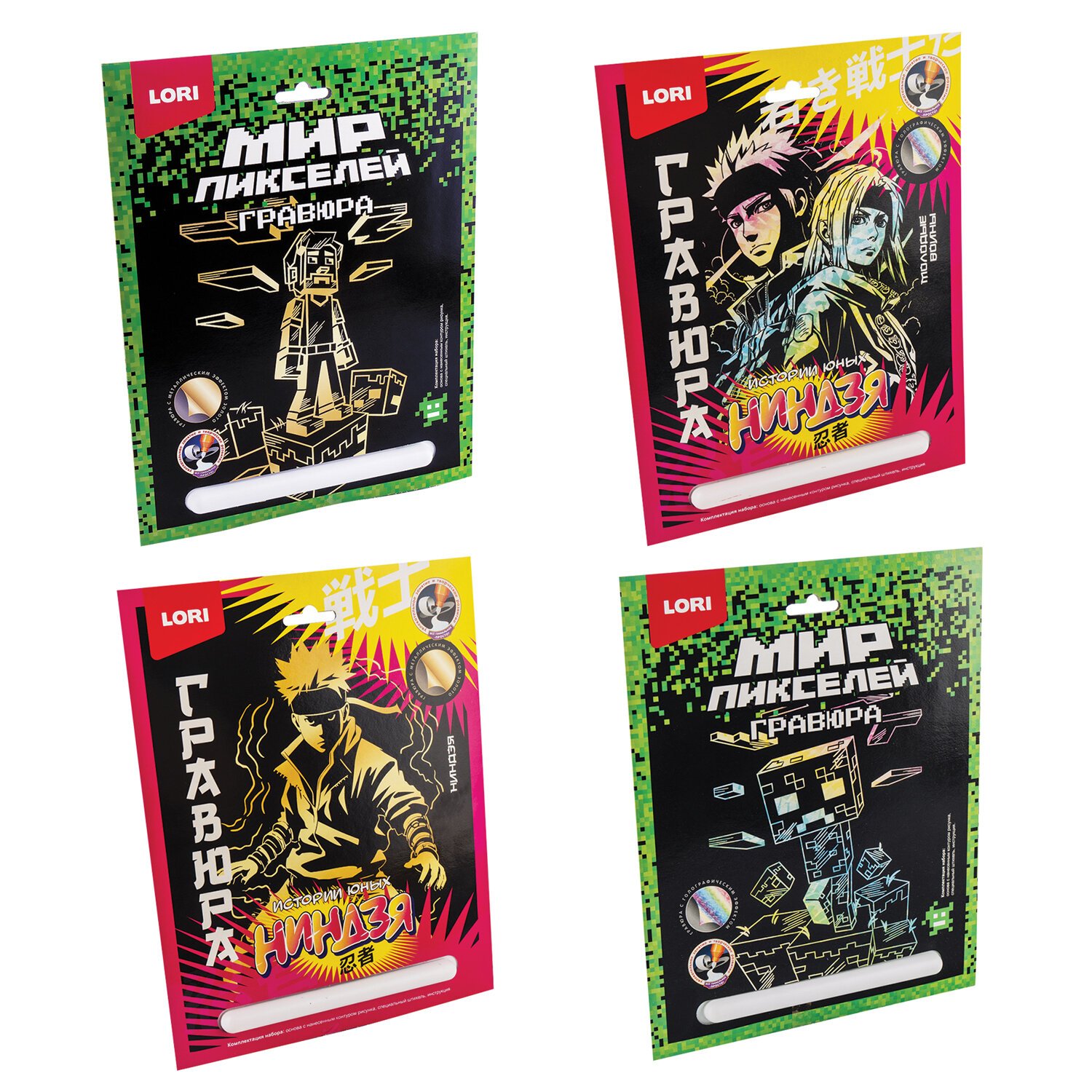 Техника создания гравюры увлекательна и достаточно проста. Необходимо лишь взять штихель – особый скребок, входящий в состав набора, – и процарапать рисунок гравюры. В результате получаются яркие сюжеты с классными героями ниндзя.