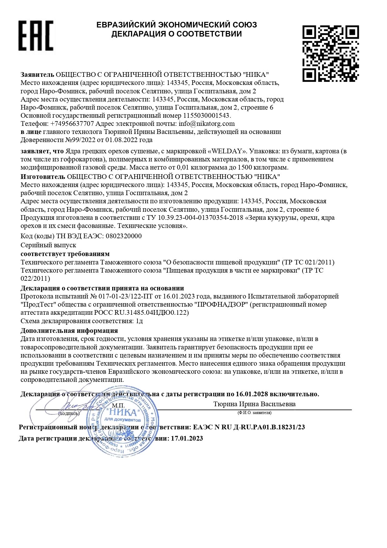 | Тип продукта | грецкий орех |