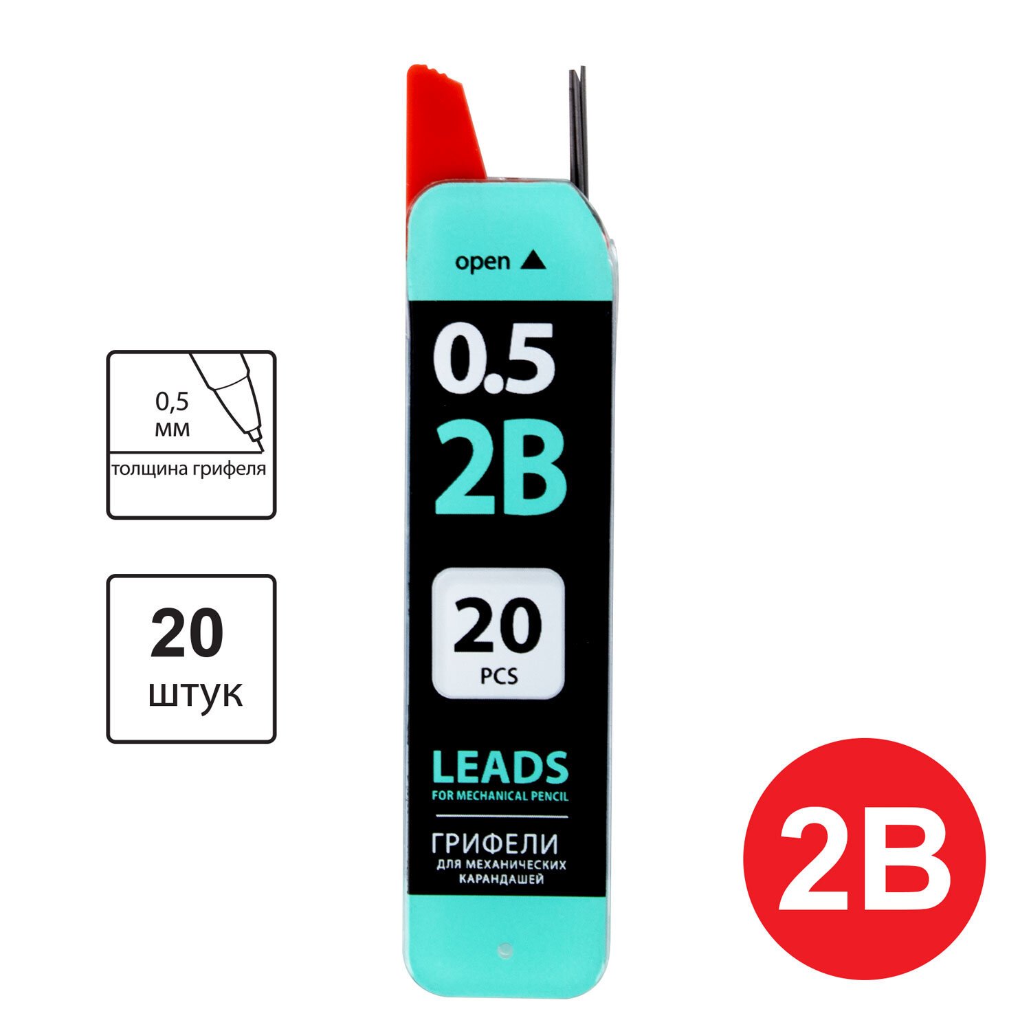 Грифели запасные 0,5 мм, 2B, BRAUBERG, КОМПЛЕКТ 20 шт., "Black Jack", 180448