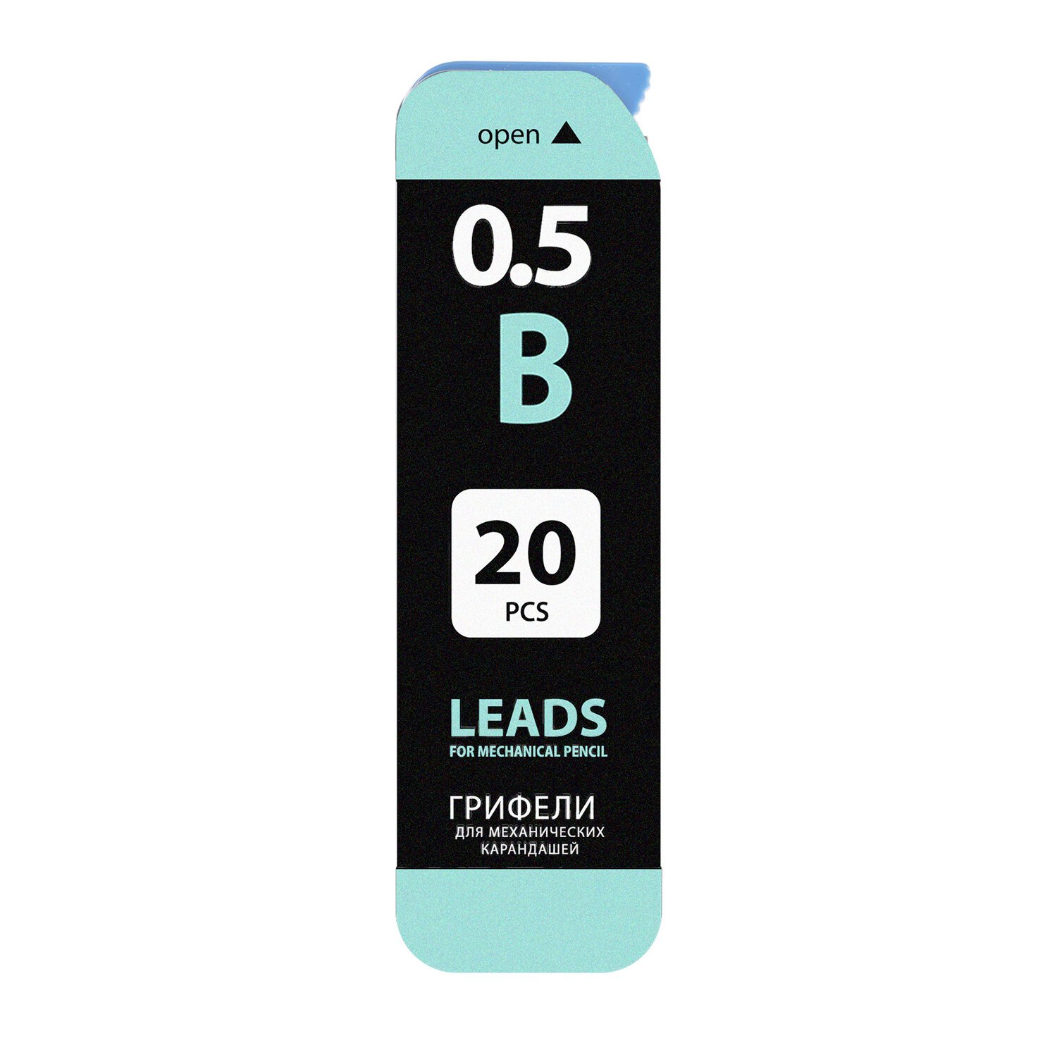 Грифели запасные 0,5 мм, 2B, BRAUBERG, КОМПЛЕКТ 20 шт., "Black Jack", 180448