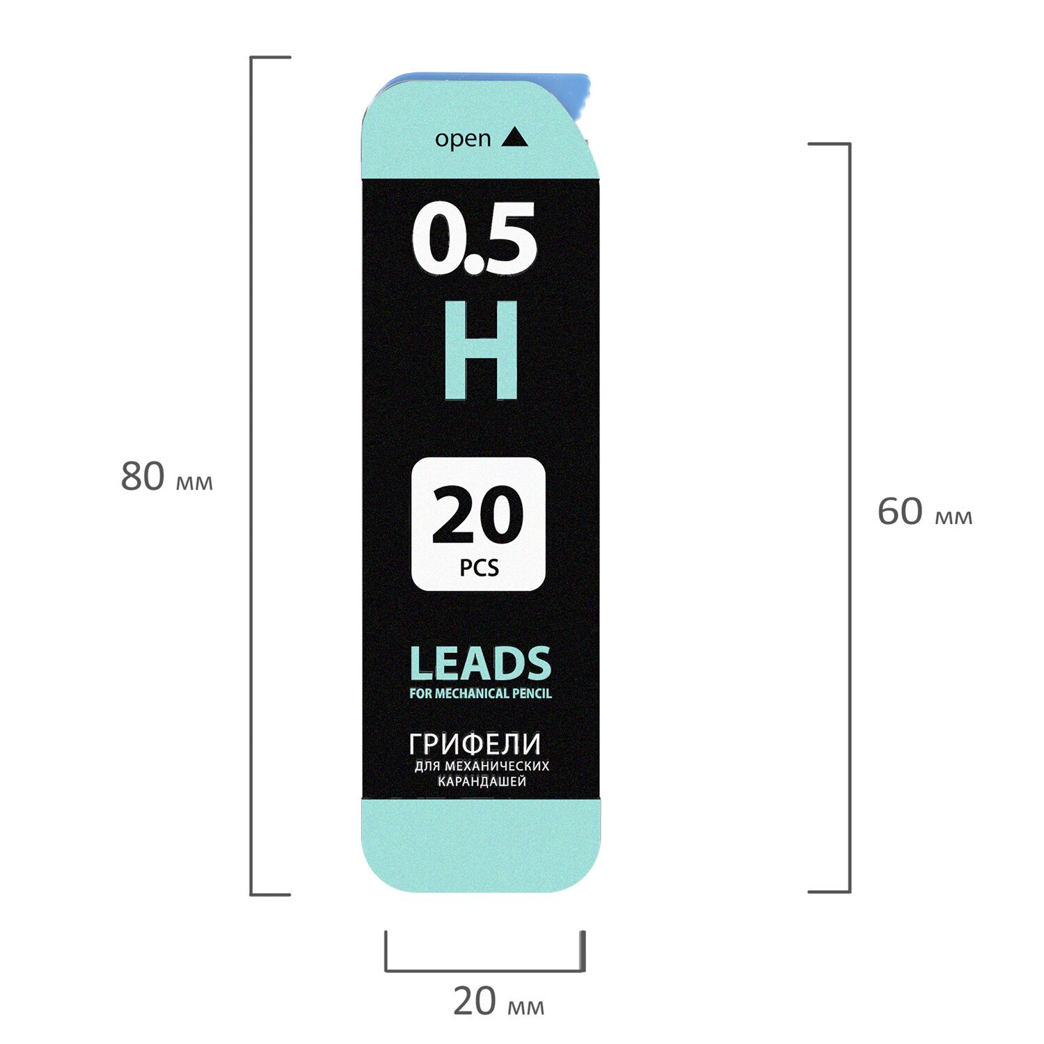 Грифели имеют твердость Н. Длина изделия – 60 мм, а диаметр – 0,5 мм. Цвет – серый.
