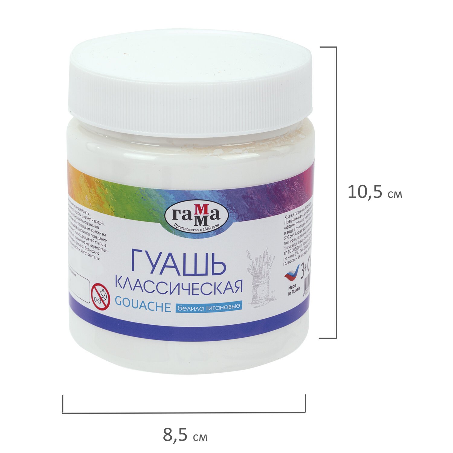 Гуашь 1 шт. ГАММА классическая 500 мл, белила титановые, 221060501