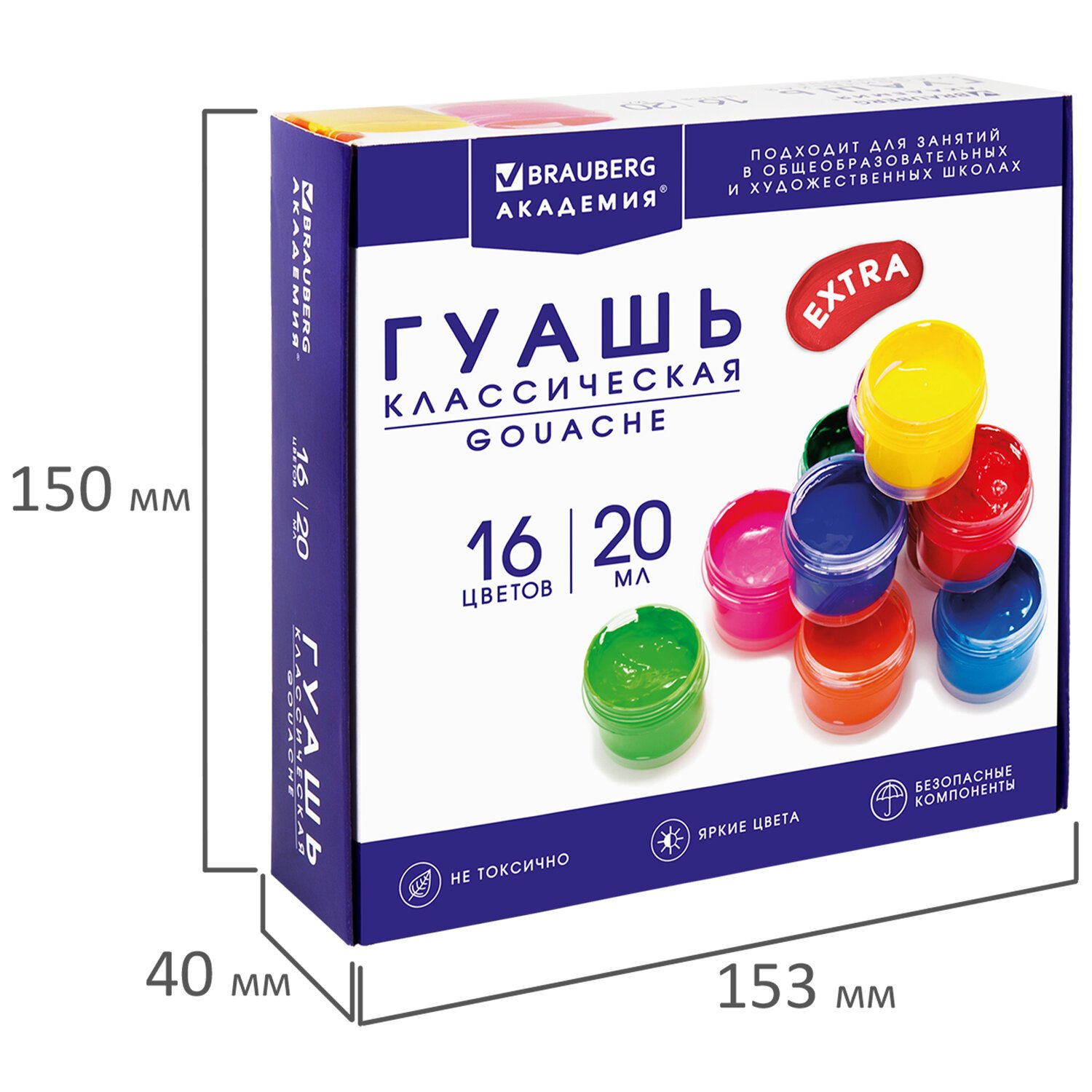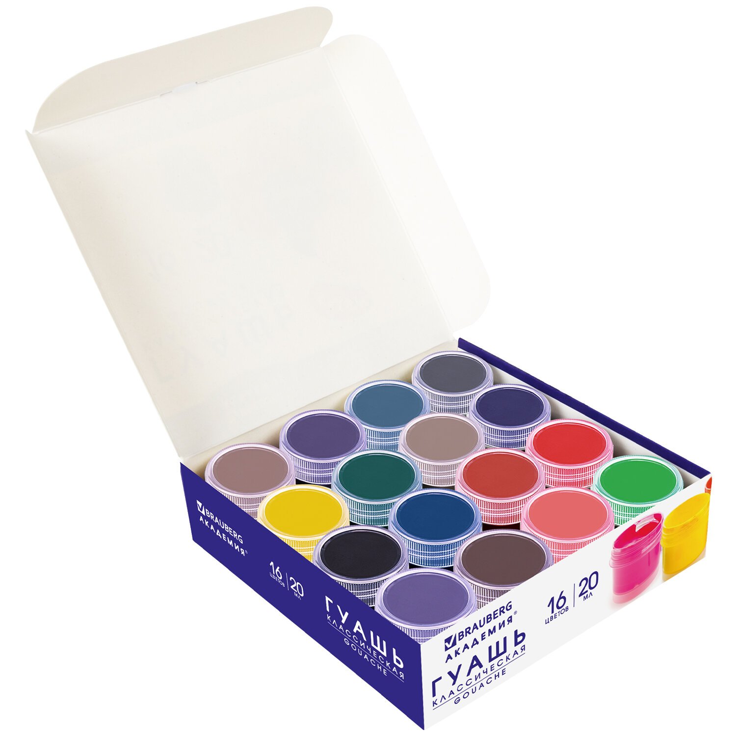 Гуашь BRAUBERG "АКАДЕМИЯ КЛАССИЧЕСКАЯ ЭКСТРА", 16 цветов по 20 мл, 192373