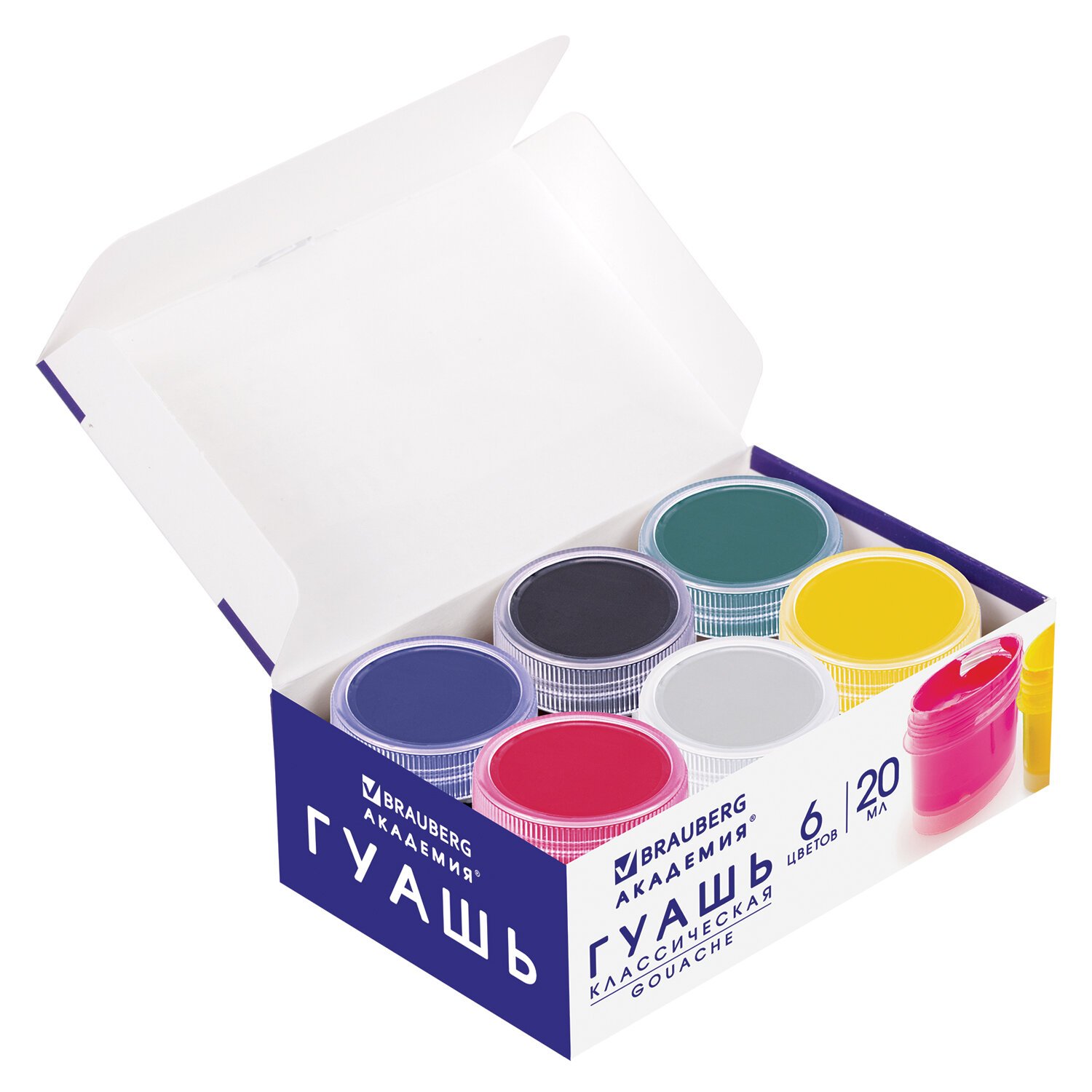 Гуашь BRAUBERG "АКАДЕМИЯ КЛАССИЧЕСКАЯ ЭКСТРА", 6 цветов по 20 мл, 192371
