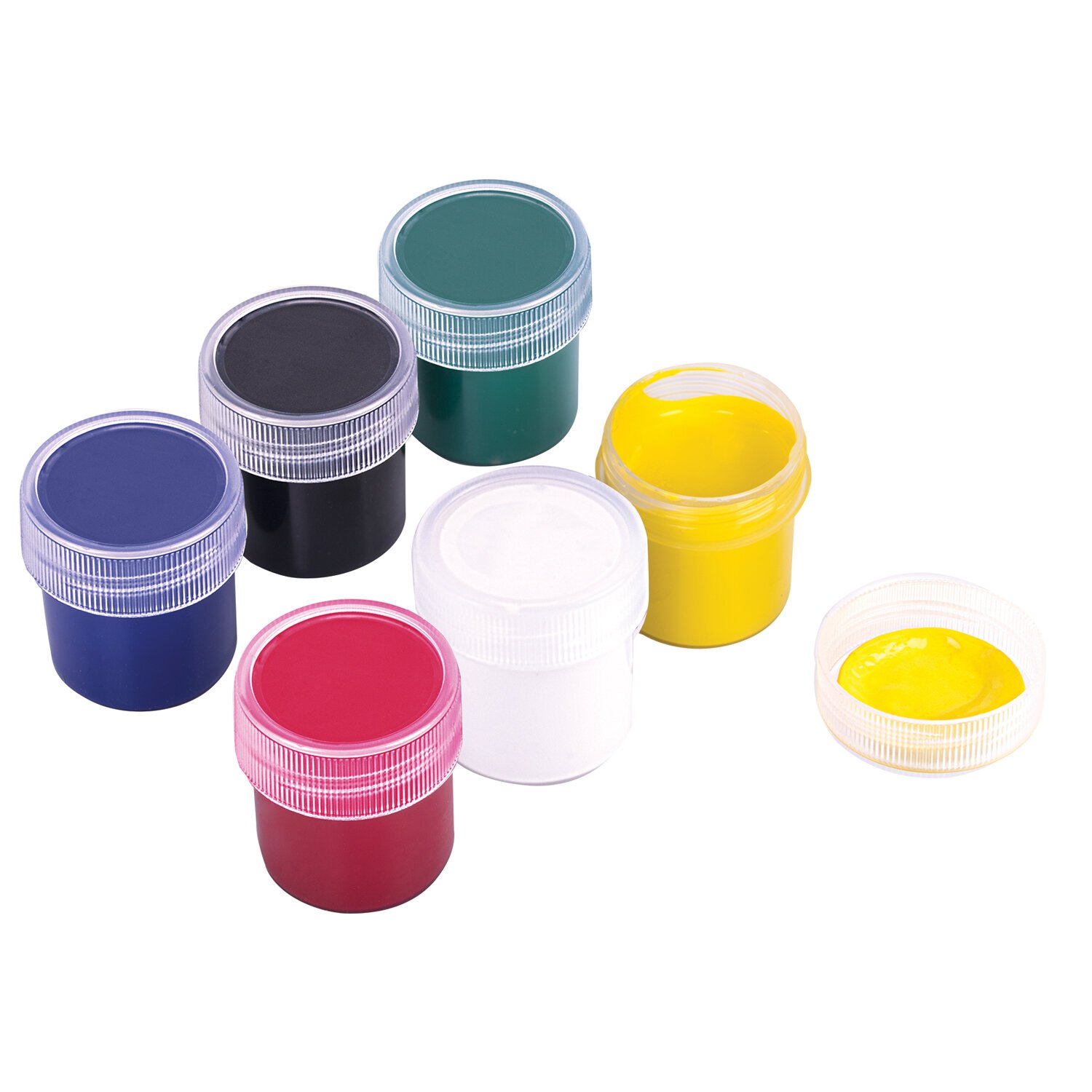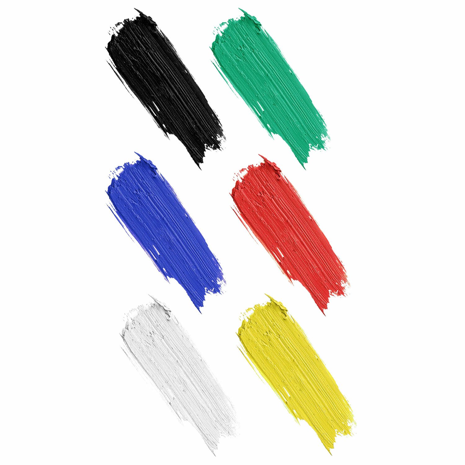 В наборе 6 ярких и насыщенных цветов: белый, черный, красный, синий, желтый, зеленый.