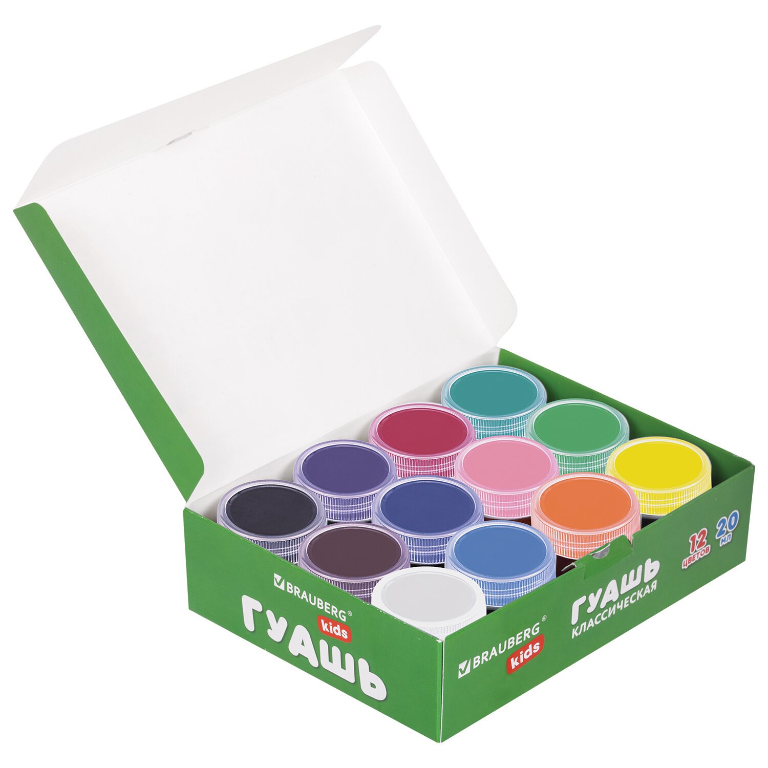 Гуашь BRAUBERG KIDS "NEW", 12 цветов по 20 мл, 192369