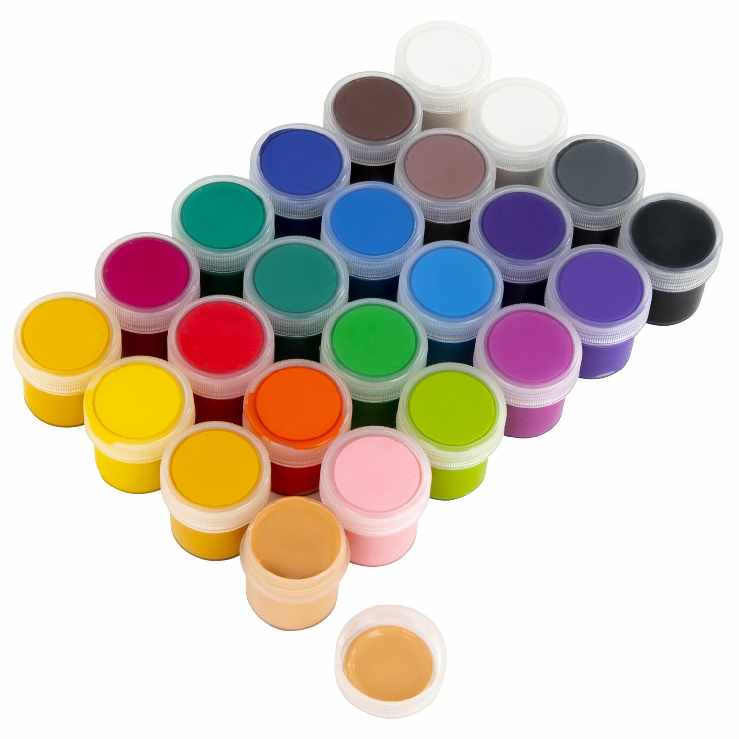 В наборе 24 ярких и насыщенных цвета: белый (2 шт.), желтый, красный, синий, зеленый, черный, травянисто-зеленый, оранжевый, фиолетовый, коричневый, голубой, розовый, серый, светло-голубой, светло-фиолетовый, бежевый, светло-желтый, охра, красно-коричневый, темно-зеленый, салатовый, бордо, сиреневый.