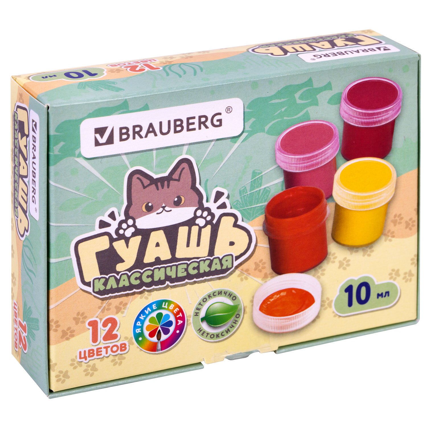 Гуашь BRAUBERG "МИЛЫЕ КОТЫ", 12 цветов по 10 мл, 192640