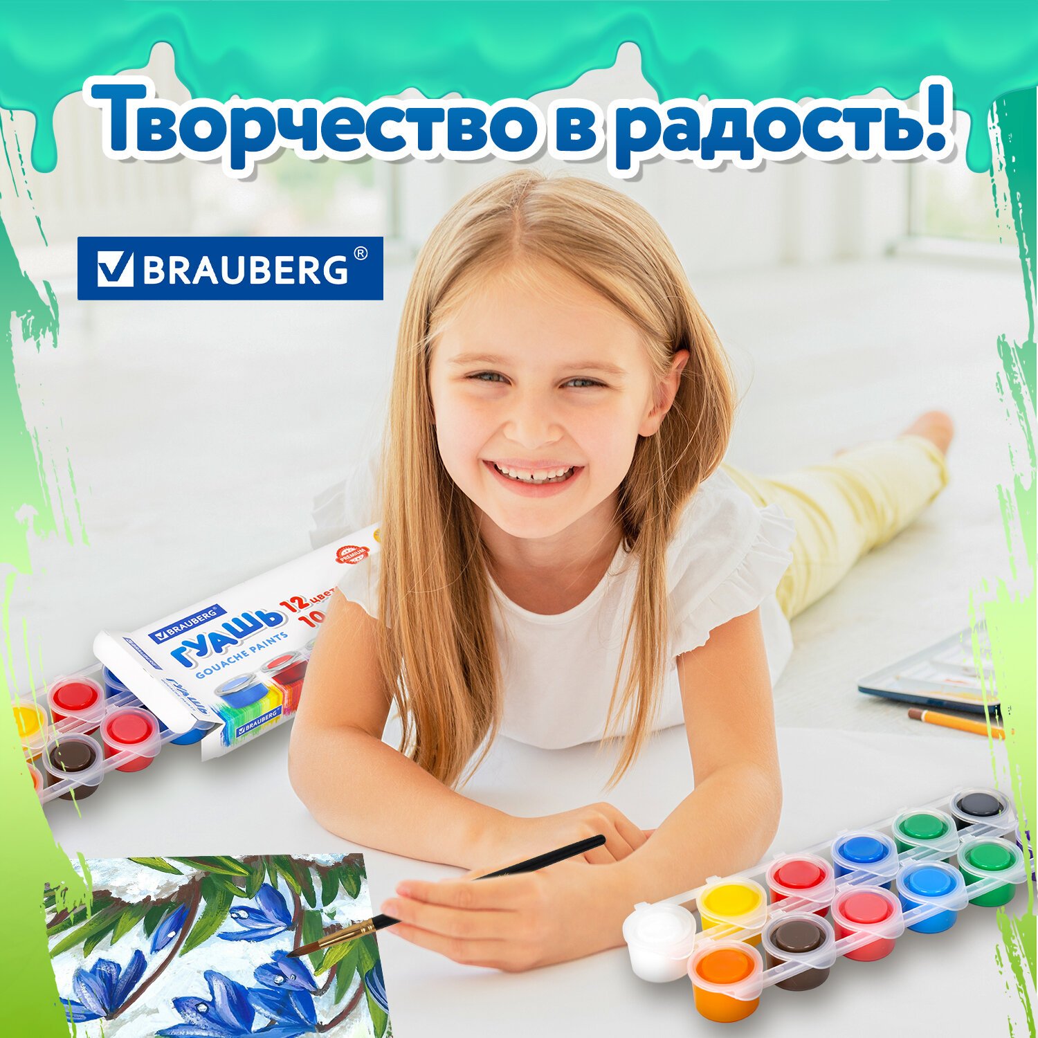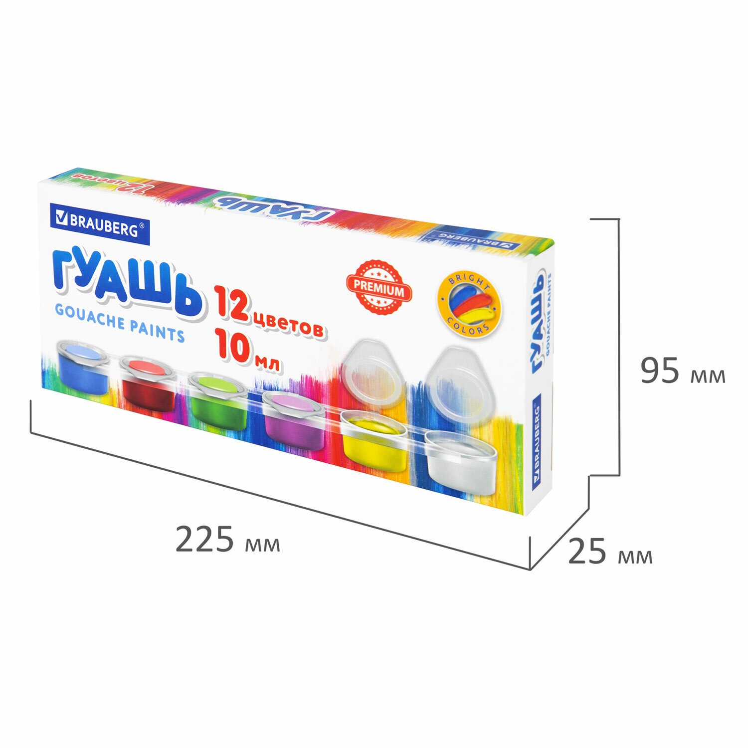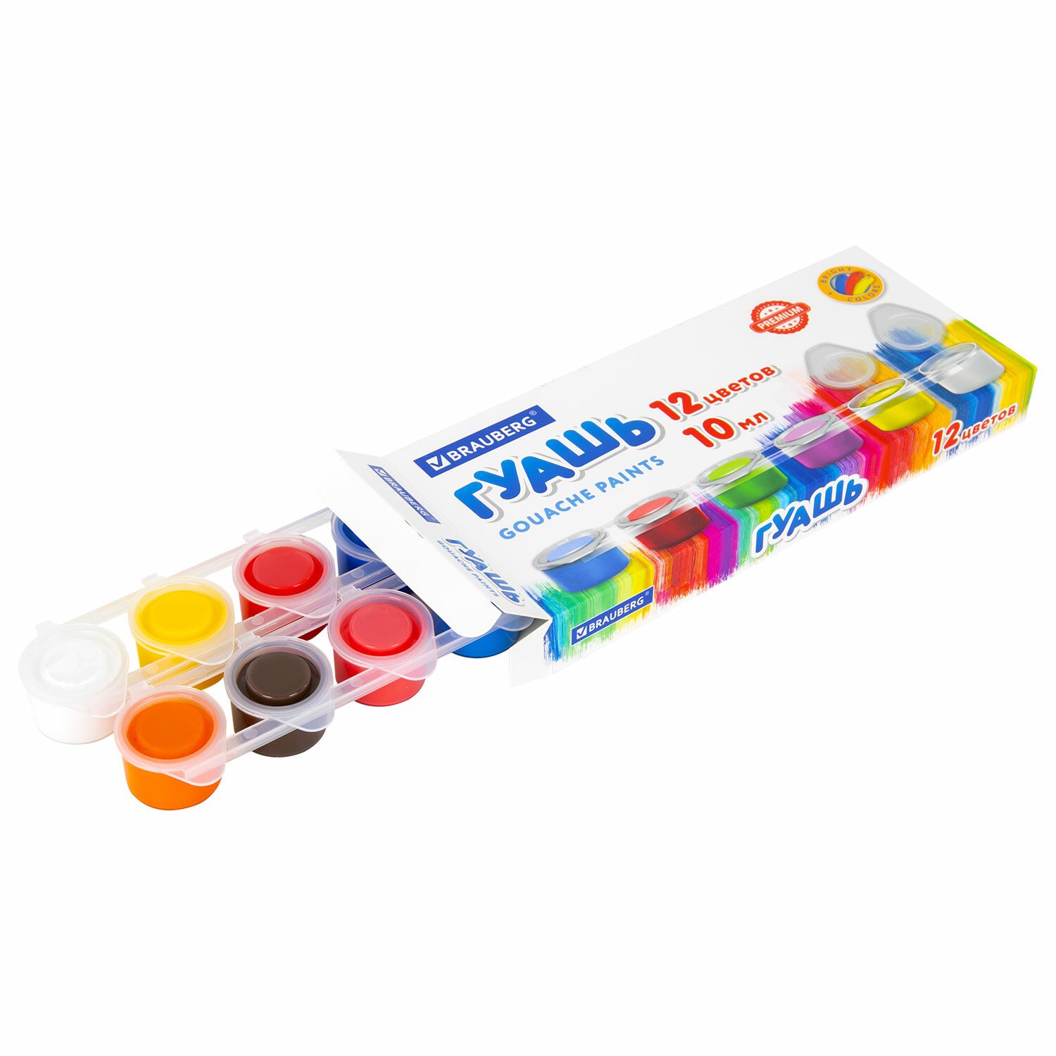 Гуашь BRAUBERG "PREMIUM", 12 цветов по 10 мл, 191907