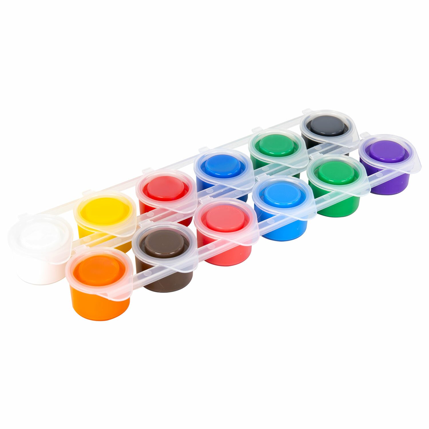 В наборе 12 ярких и насыщенных цветов: белый, желтый, красный, синий, зеленый, черный, оранжевый, коричневый, розовый, голубой, светло-зеленый, фиолетовый.