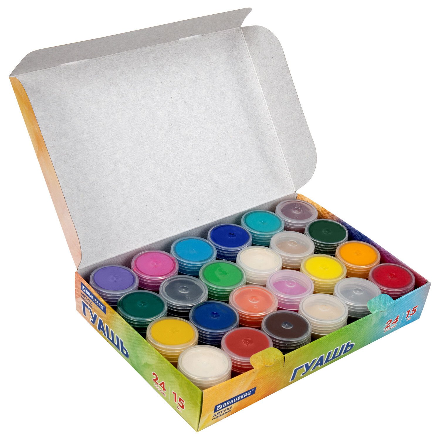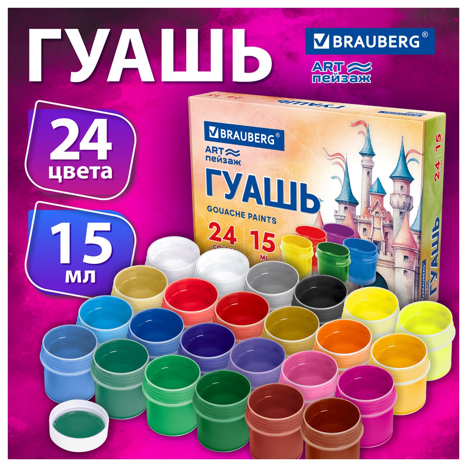 Гуашь BRAUBERG "ЗАМОК" 24 цвета по 15 мл, 192686