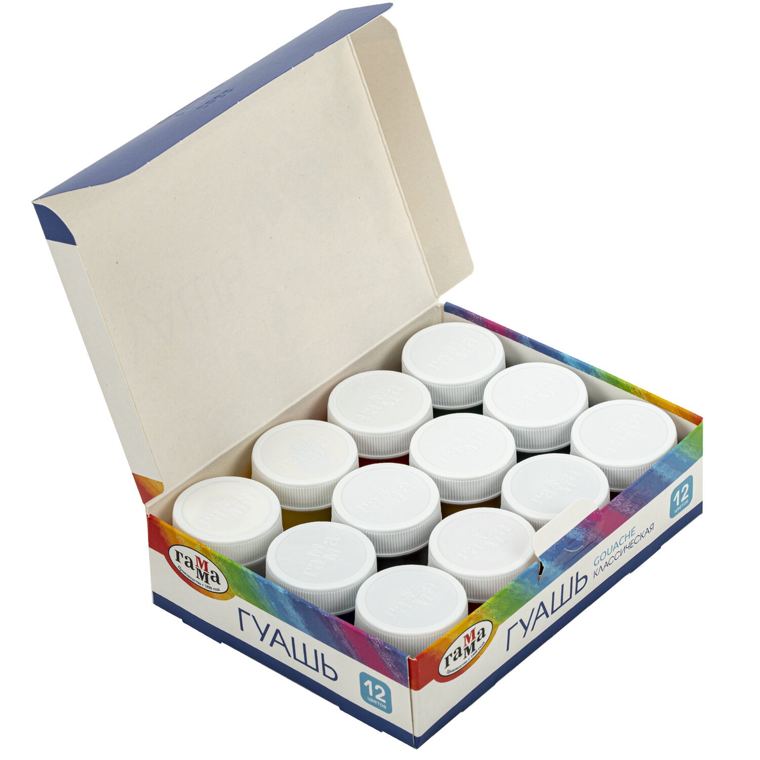 Гуашь ГАММА "Классическая", 12 цветов по 20 мл, картонная упаковка, 22103012