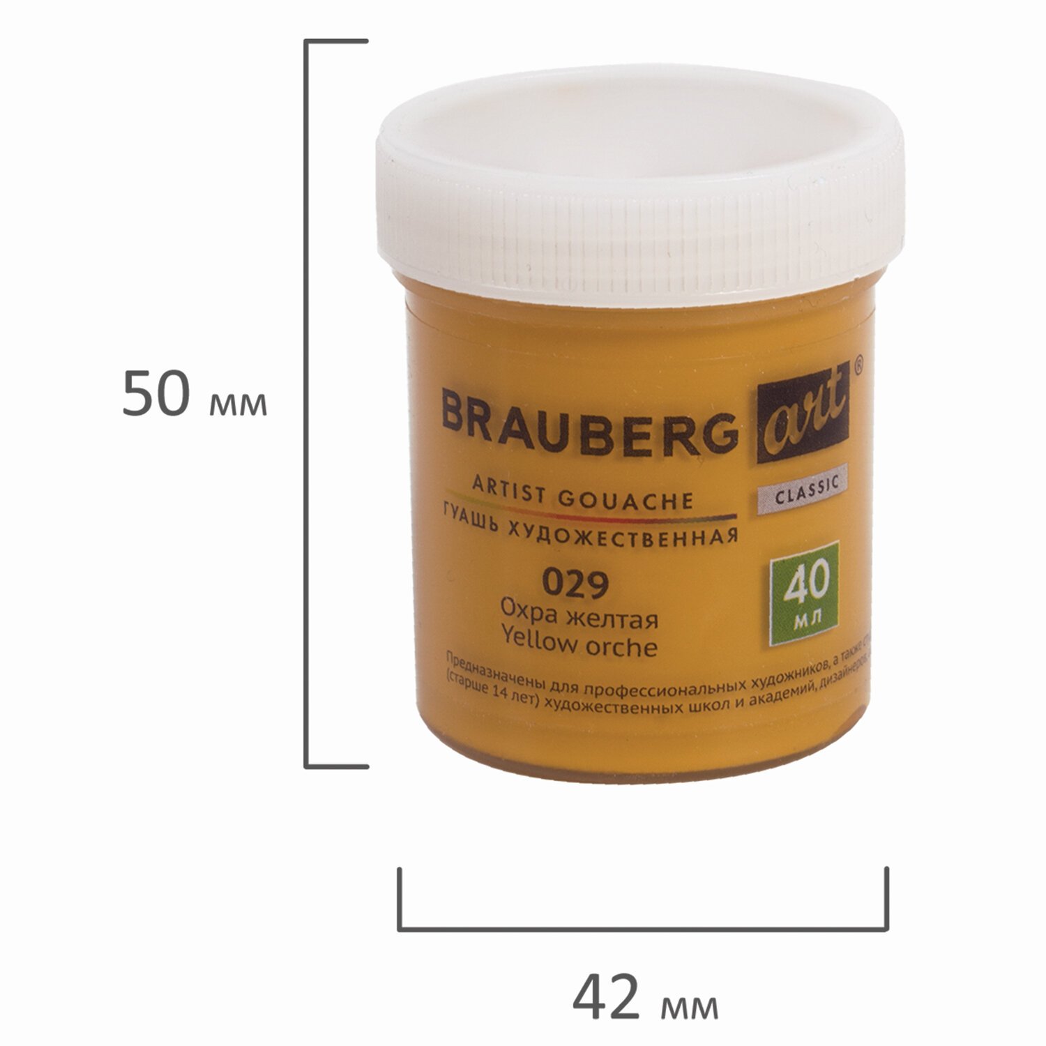 Гуашь художественная 1 шт., BRAUBERG ART CLASSIC, баночка 40 мл, ОХРА ЖЕЛТАЯ, 191574