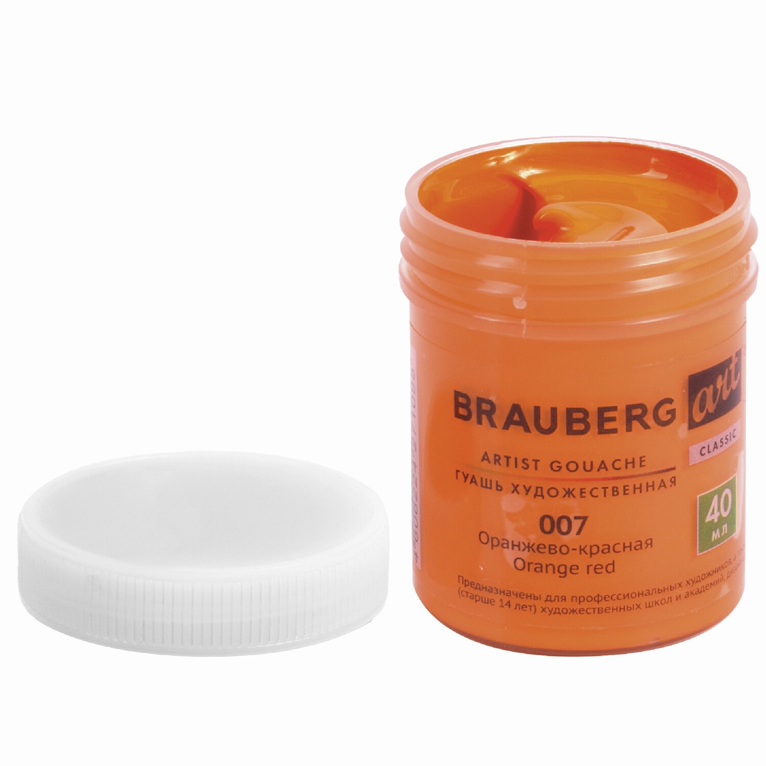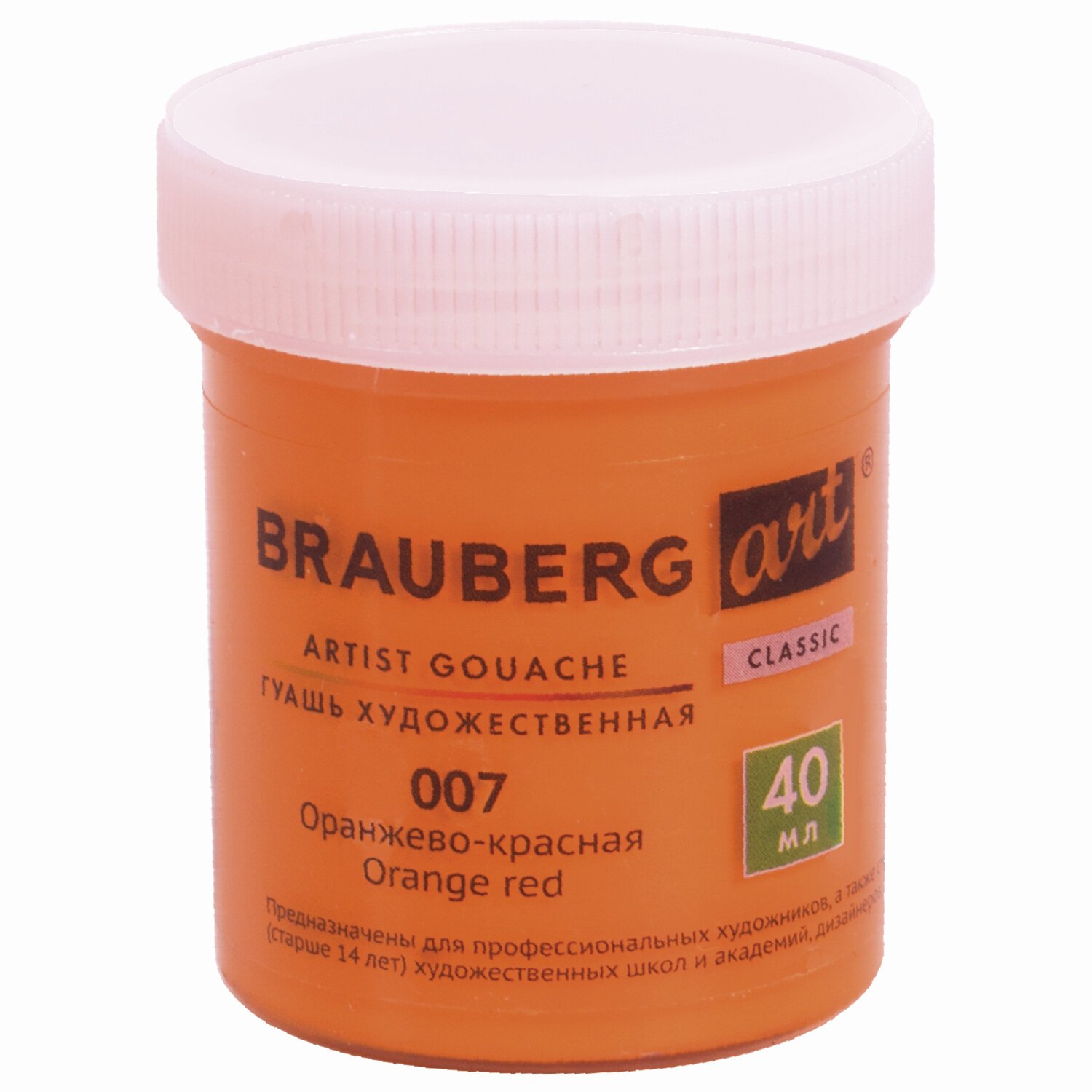 Гуашь художественная 1 шт., BRAUBERG ART CLASSIC, баночка 40 мл, ОРАНЖЕВО-КРАСНАЯ, 191573