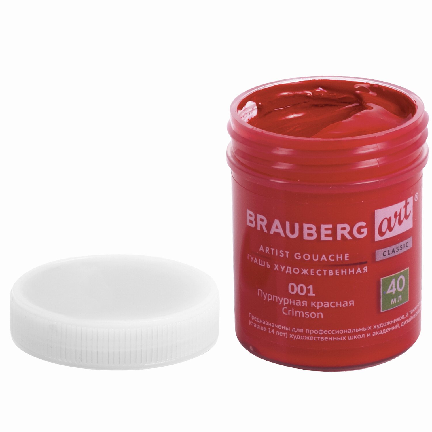 Гуашь художественная 1 шт., BRAUBERG ART CLASSIC, баночка 40 мл, ПУРПУРНАЯ КРАСНАЯ, 191578