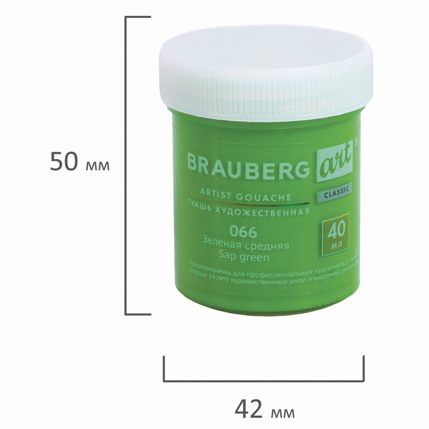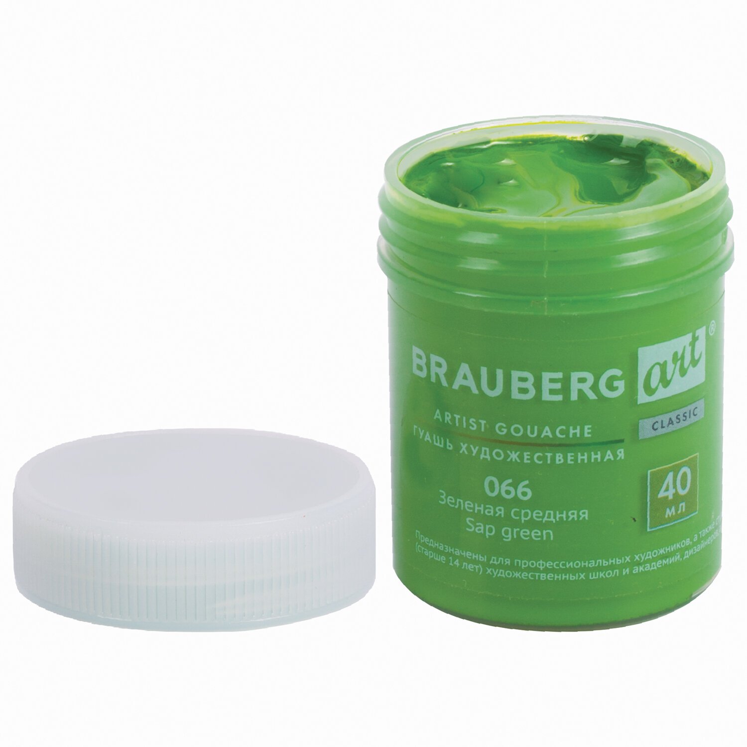 Гуашь художественная 1 шт., BRAUBERG ART CLASSIC, баночка 40 мл, ЗЕЛЕНАЯ СРЕДНЯЯ, 191579