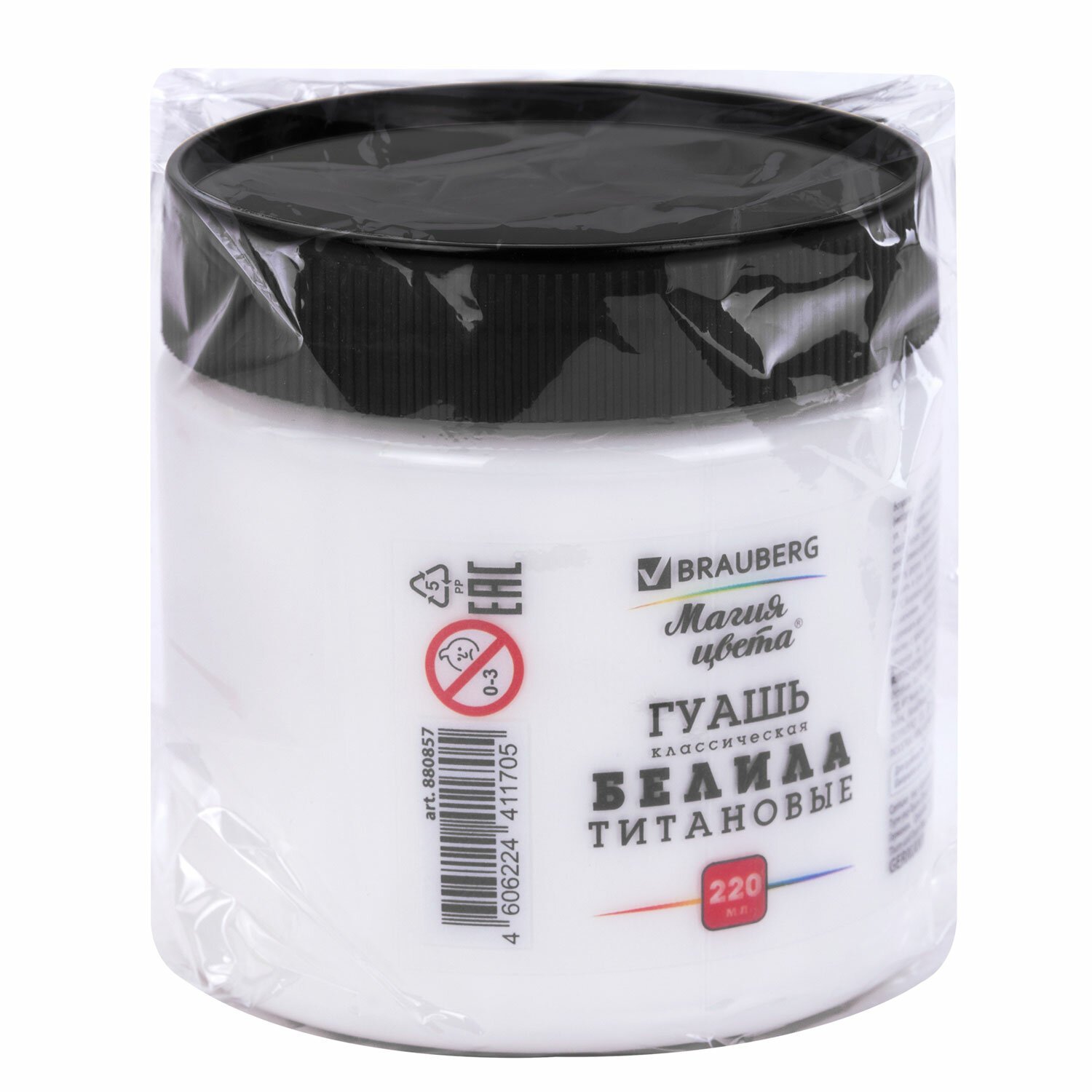 Гуашь классическая BRAUBERG "МАГИЯ ЦВЕТА" 1 шт., 220 мл, БЕЛИЛА ТИТАНОВЫЕ, индивидуальная упаковка, 880857