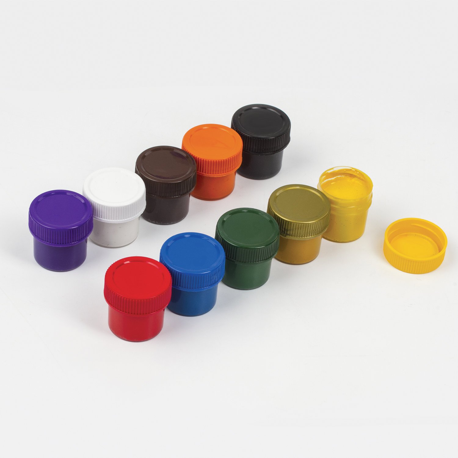 Краски полностью безопасны в использовании, не токсичны и не имеют резкого запаха. Гуашь обладает высокой светостойкостью и укрывистостью, легко размывается водой, хорошо наносится, без труда удаляется с рук и одежды. Краска находится в пластмассовой герметичной баночке, объем которой равен 20 мл. Общий объем – 200 мл. Ребенок сможет легко открыть баночки с винтовыми крышками без помощи взрослых.
