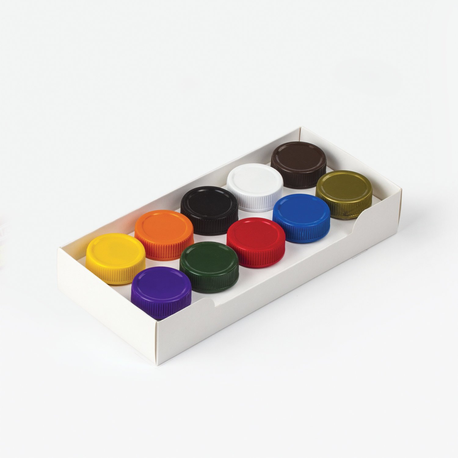 В наборе 10 ярких цветов: белый, черный, красный, желтый, синий, зеленый, оранжевый, фиолетовый, охра, коричневый.