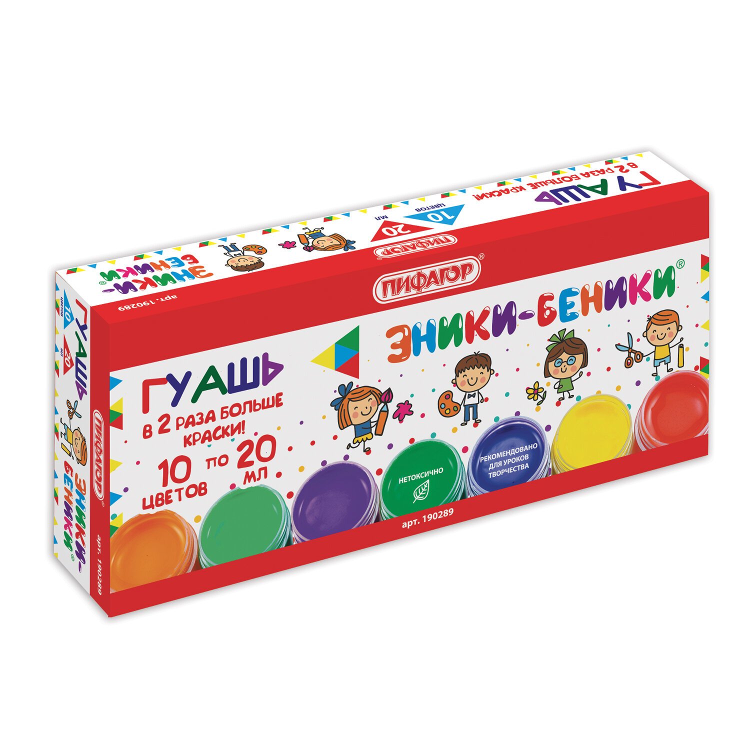 Гуашь ПИФАГОР "ЭНИКИ-БЕНИКИ", 10 цветов по 20 мл, 190289