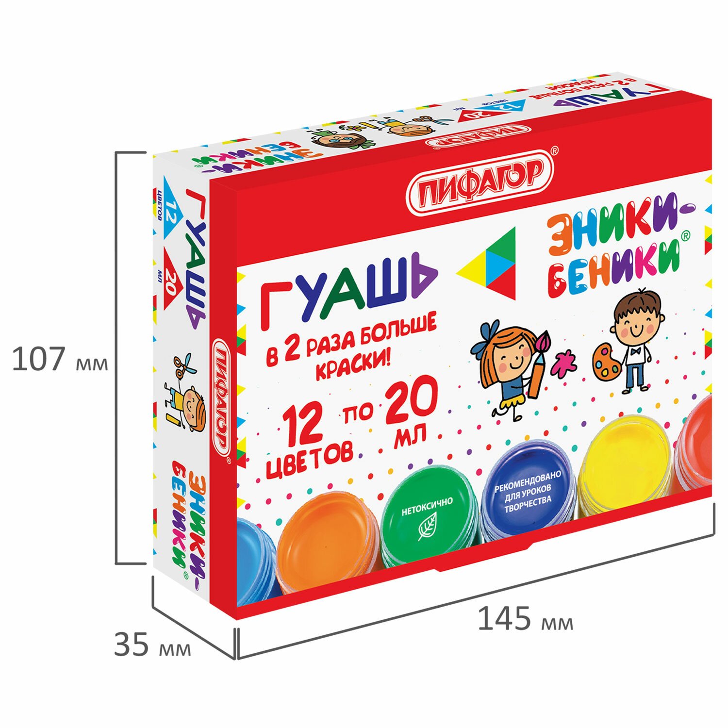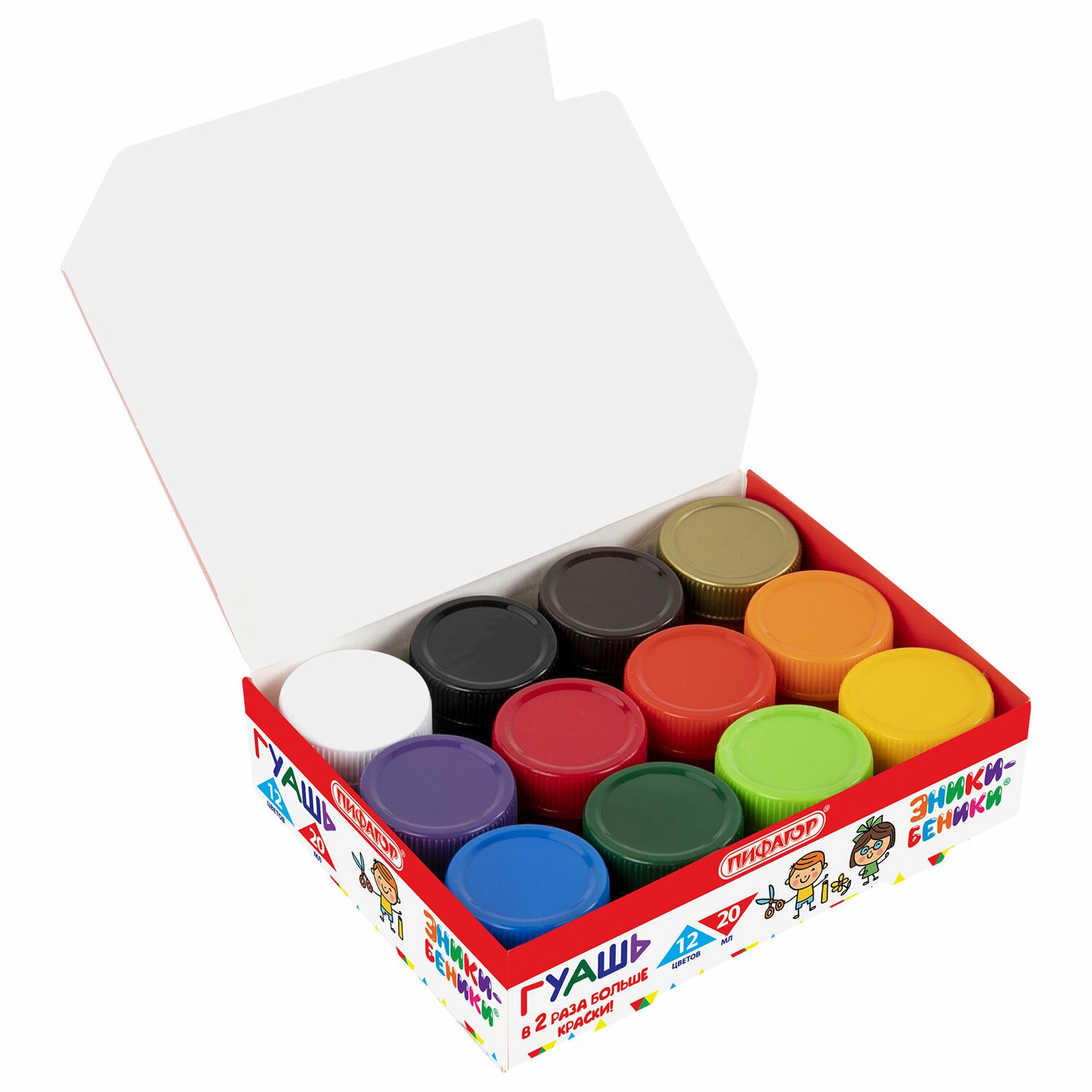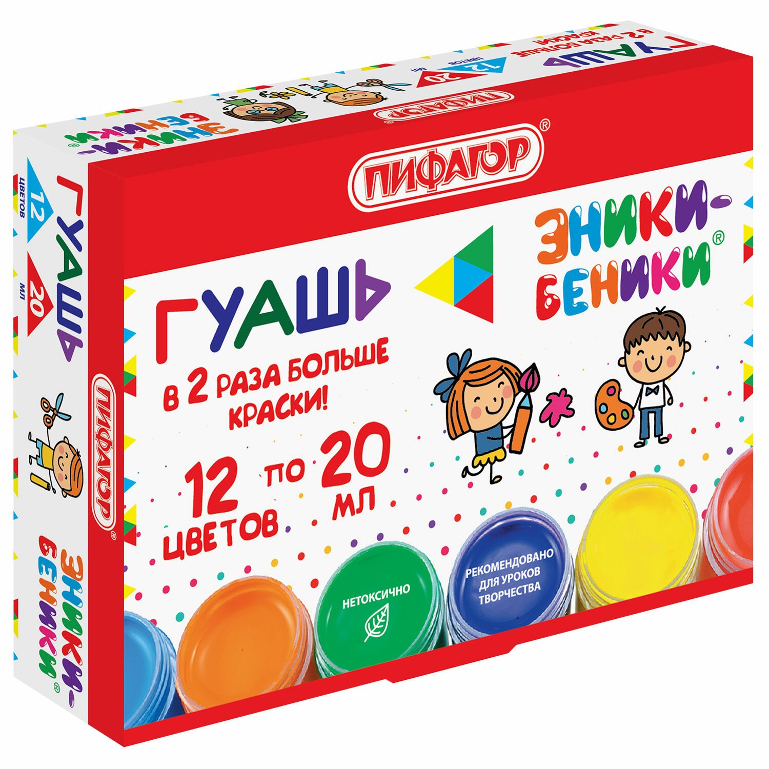 Гуашь ПИФАГОР "ЭНИКИ-БЕНИКИ" 12 цветов, по 20 мл, 190290