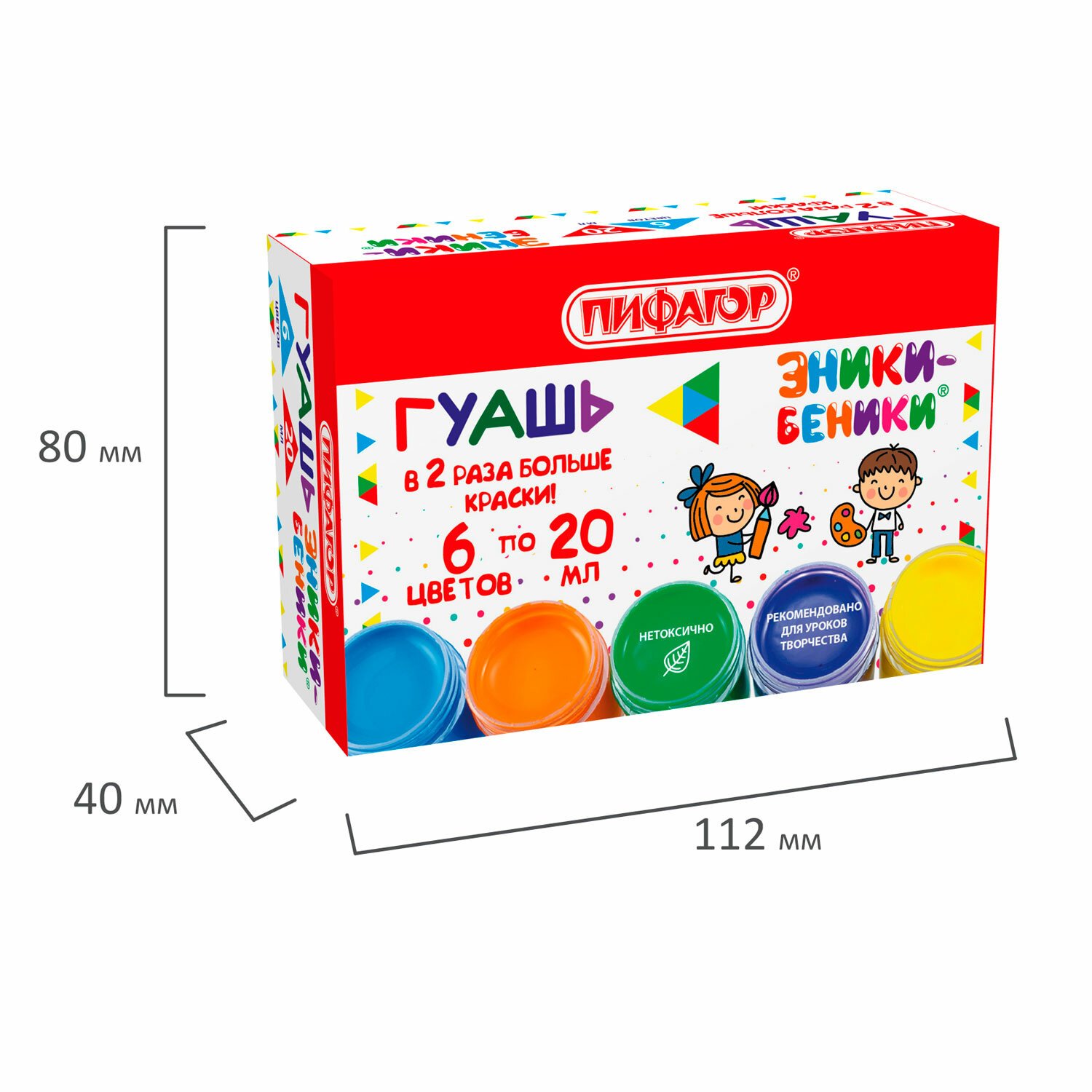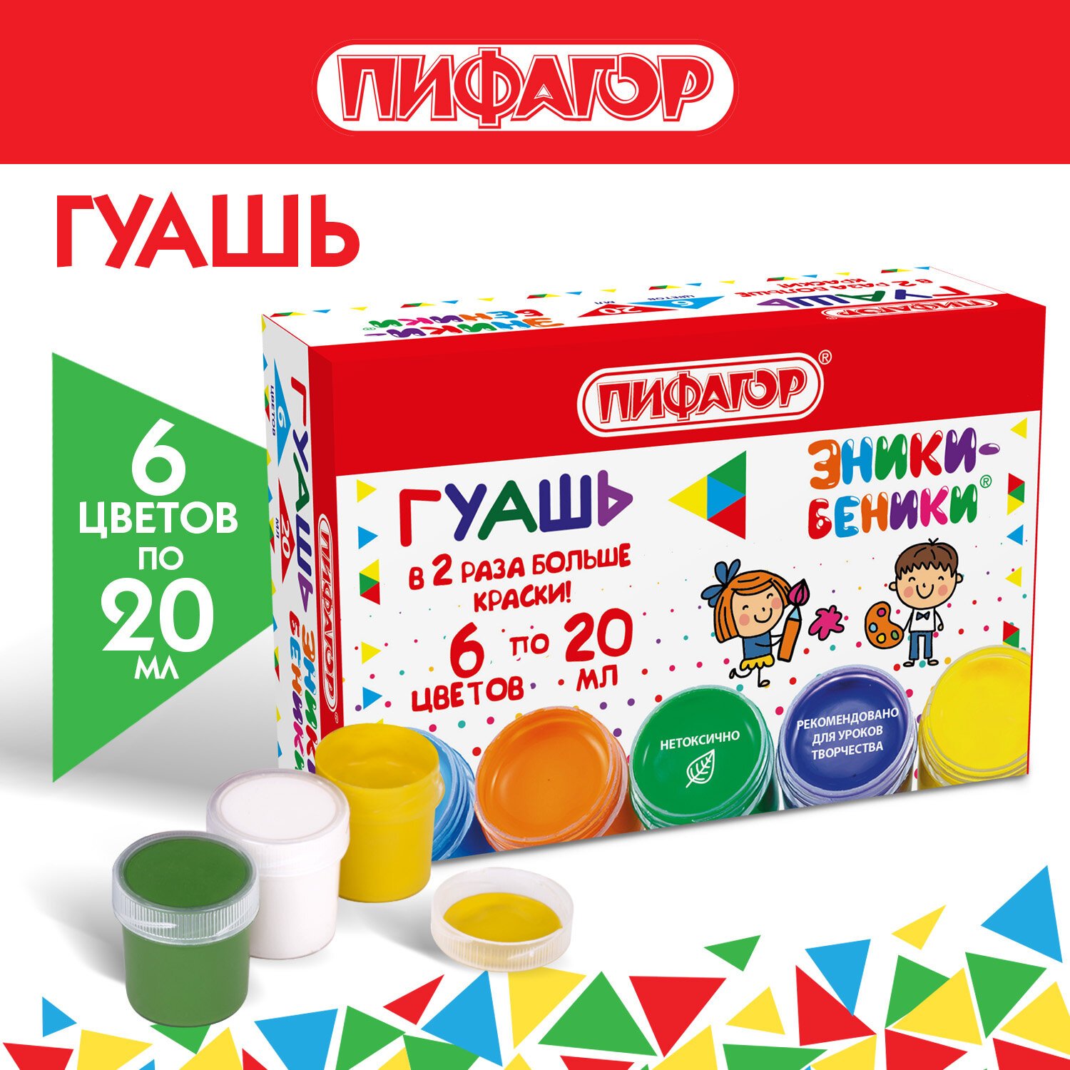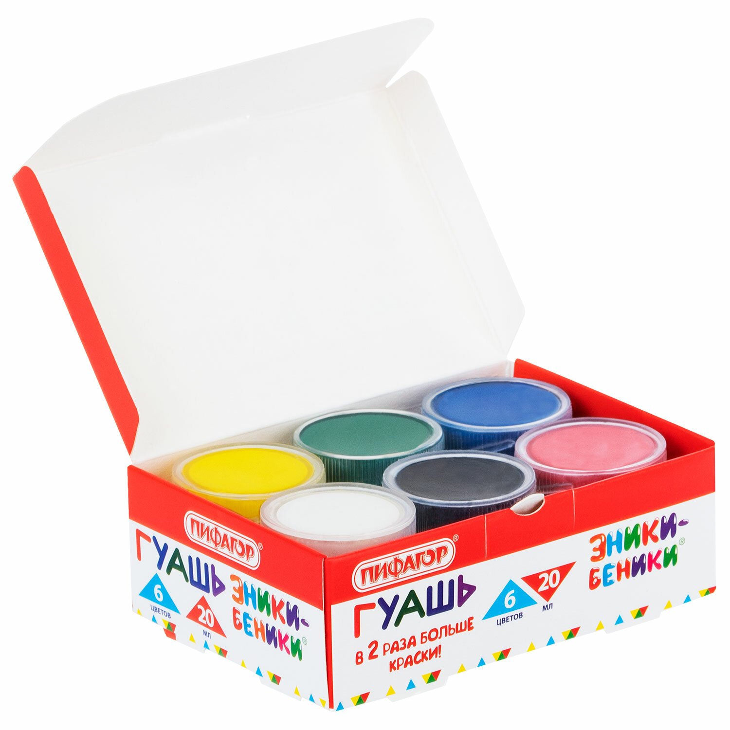 Гуашь ПИФАГОР "ЭНИКИ-БЕНИКИ NEW", 6 цветов по 20 мл, 192525