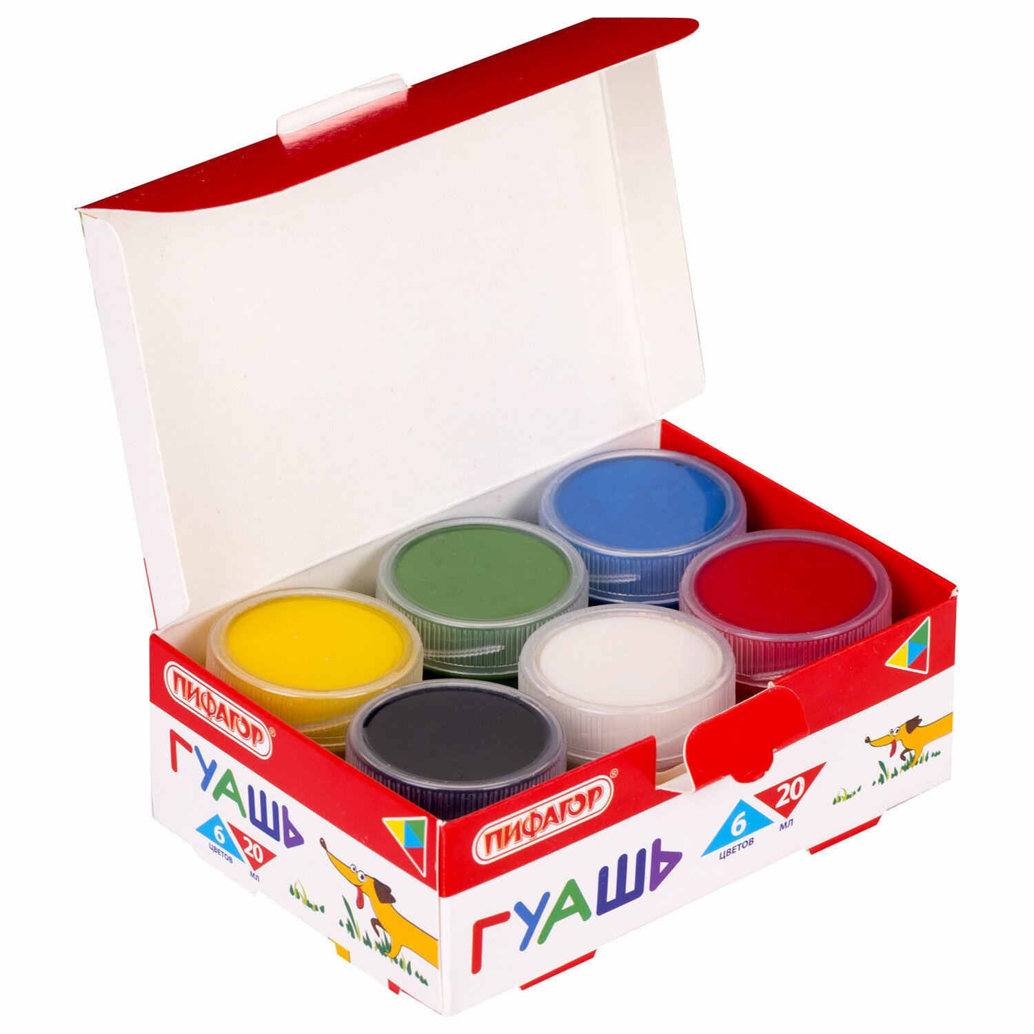 Гуашь ПИФАГОР "ВЕСЕЛАЯ ТАКСА", 6 цветов по 20 мл, 192378