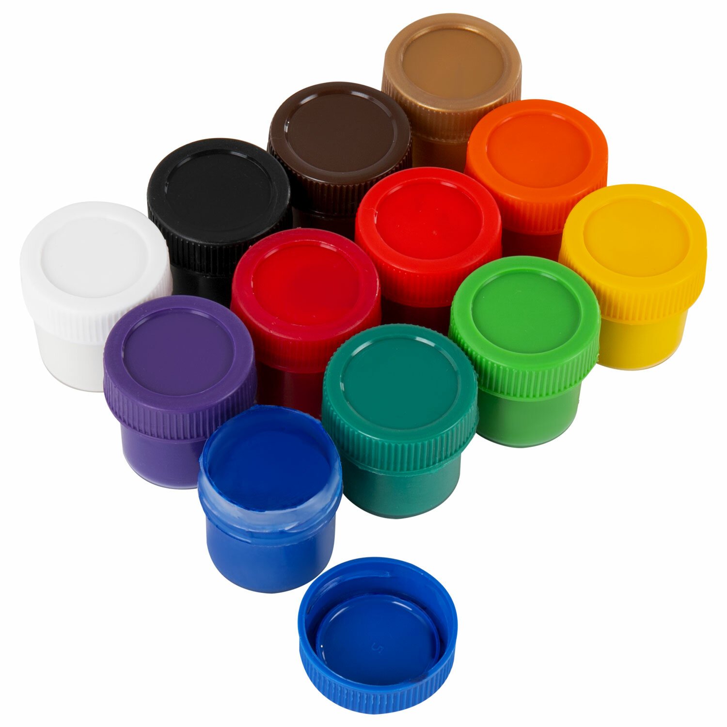 12 ярких сочных цветов красок полностью безопасны в использовании, не токсичны и не имеют резкого запаха. Гуашь имеет высокую светостойкость и укрывистость, легко размывается водой, хорошо наносится, без труда удаляется с рук и одежды. Краска находится в пластмассовой герметичной баночке, объем которой равен 17 мл. Общий объем – 204 мл.