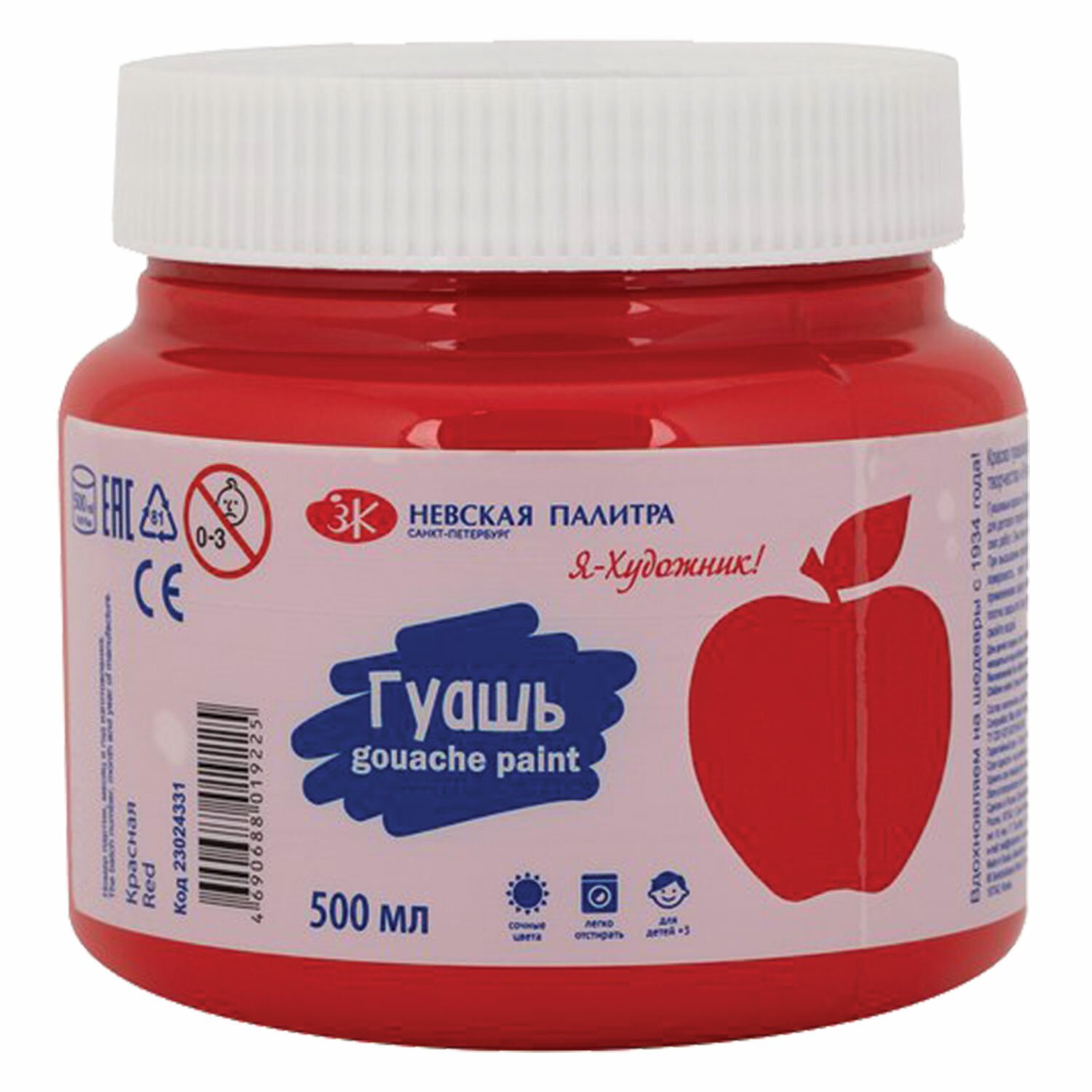 Гуашь "Я - Художник!", банка 500 мл, красная, 23024331