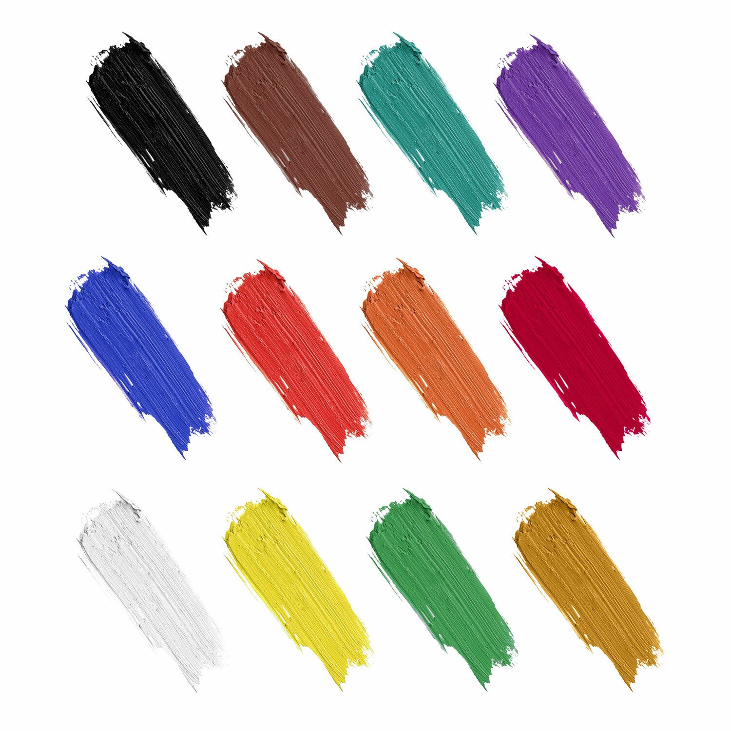 12 ярких сочных цветов красок полностью безопасны в использовании, не токсичны и не имеют резкого запаха. Гуашь обладает высокой светостойкостью и укрывистостью, легко размывается водой, хорошо наносится, без труда удаляется с рук и одежды. Краска находится в пластмассовой герметичной баночке, объем которой равен 17,5 мл. Общий объем – 210 мл.