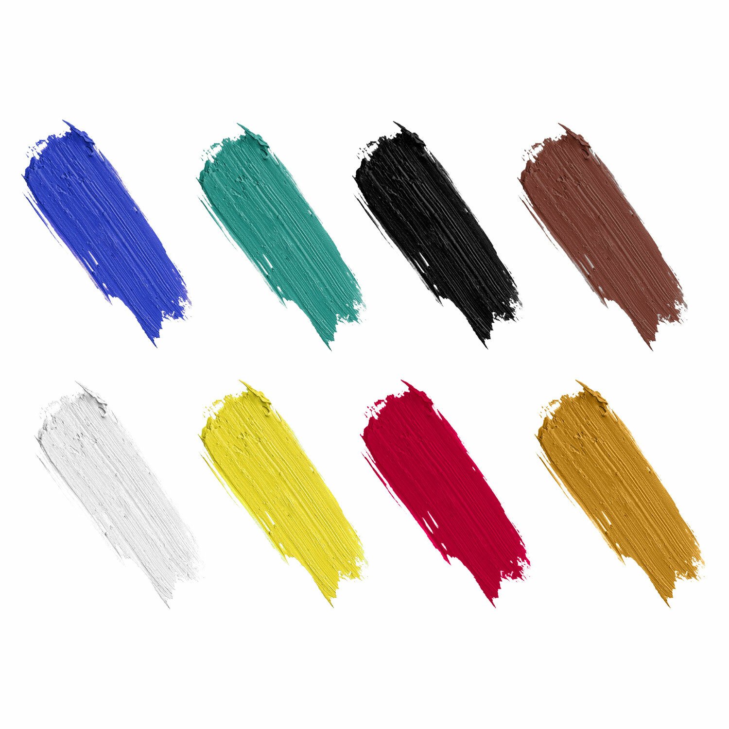 8 ярких сочных цветов красок полностью безопасны в использовании, не токсичны и не имеют резкого запаха. Гуашь обладает высокой светостойкостью и укрывистостью, легко размывается водой, хорошо наносится, без труда удаляется с рук и одежды. Краска находится в пластмассовой герметичной баночке, объем которой равен 17,5 мл. Общий объем – 140 мл.