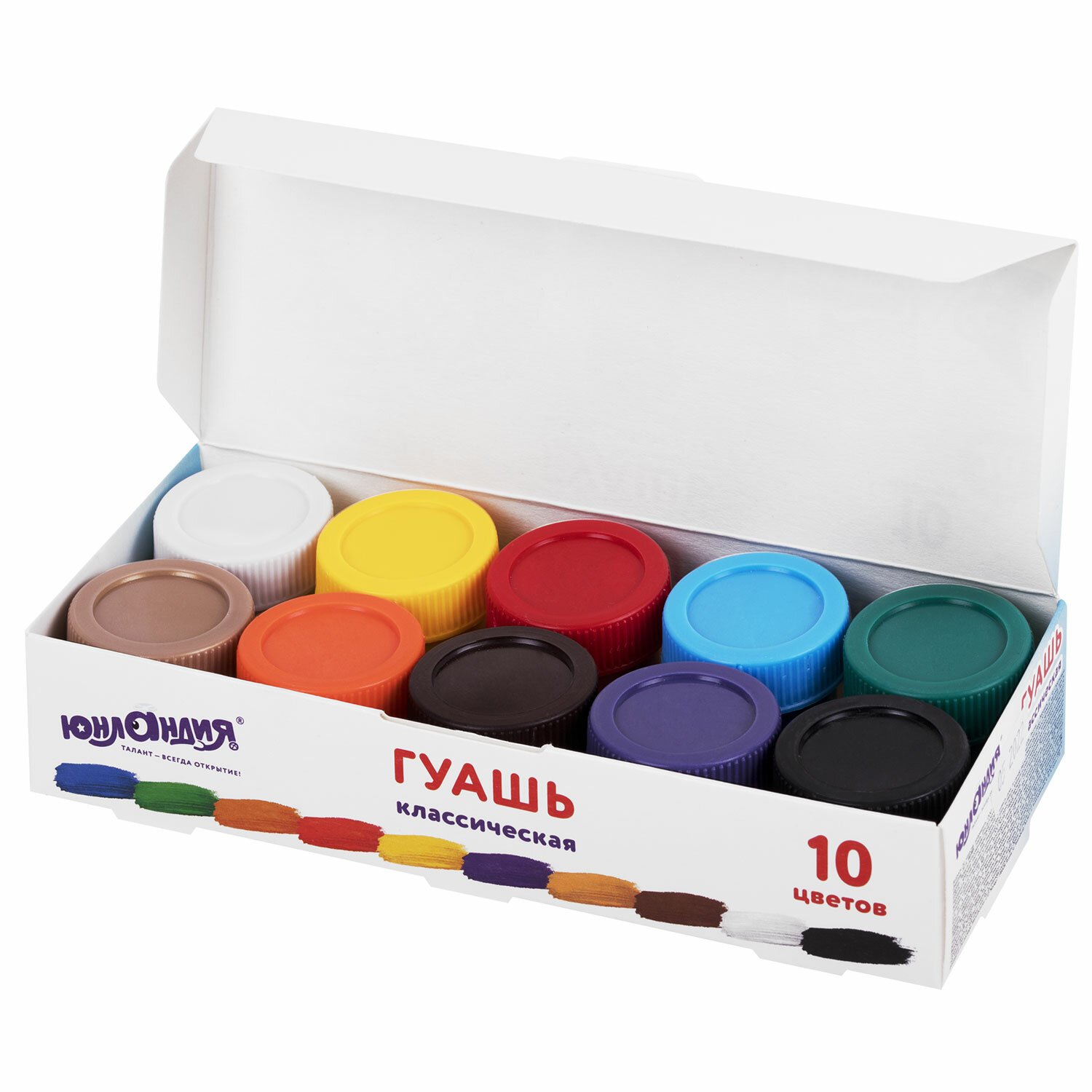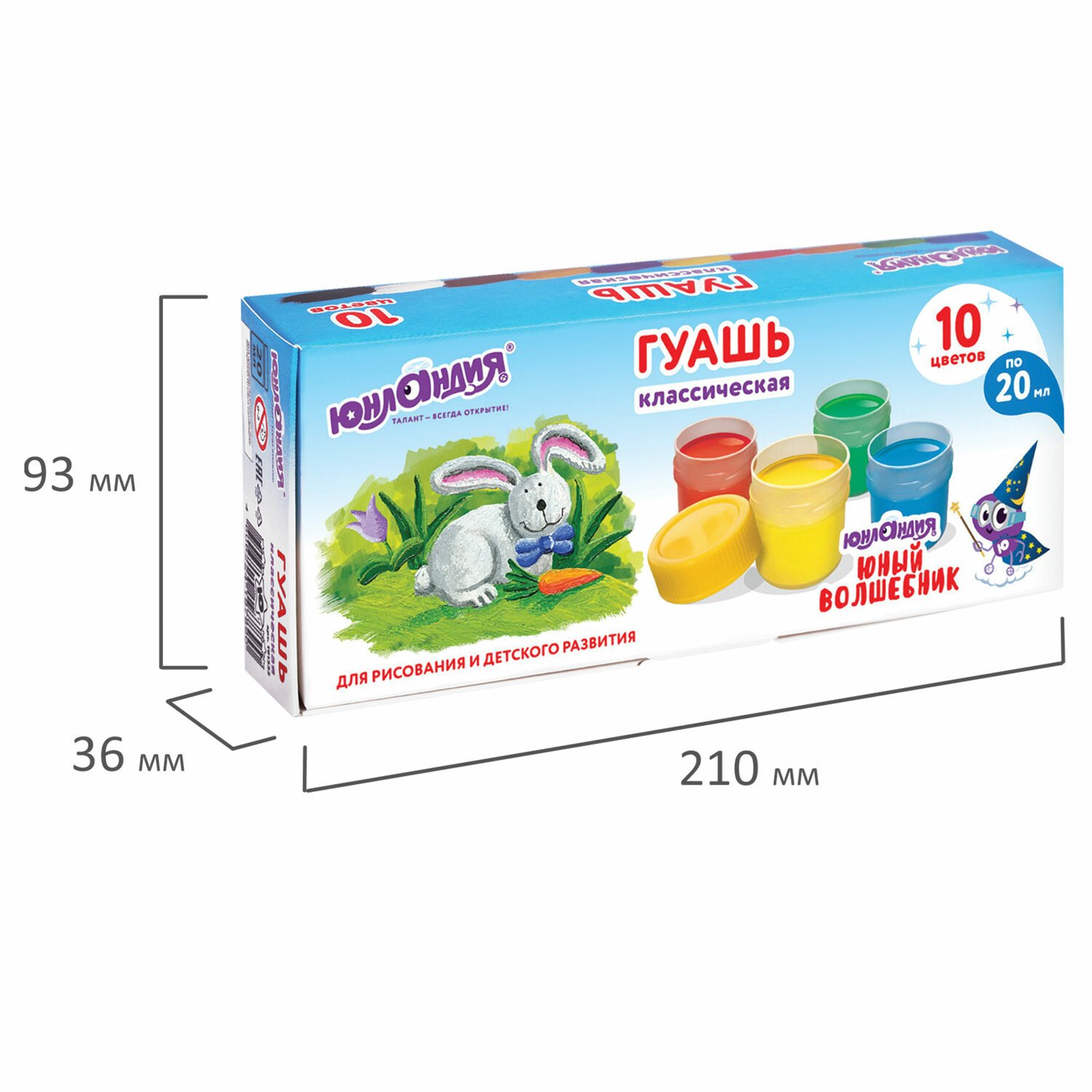 Гуашь ЮНЛАНДИЯ "ЮНЫЙ ВОЛШЕБНИК", 10 цветов по 20 мл, высшее качество, 191332