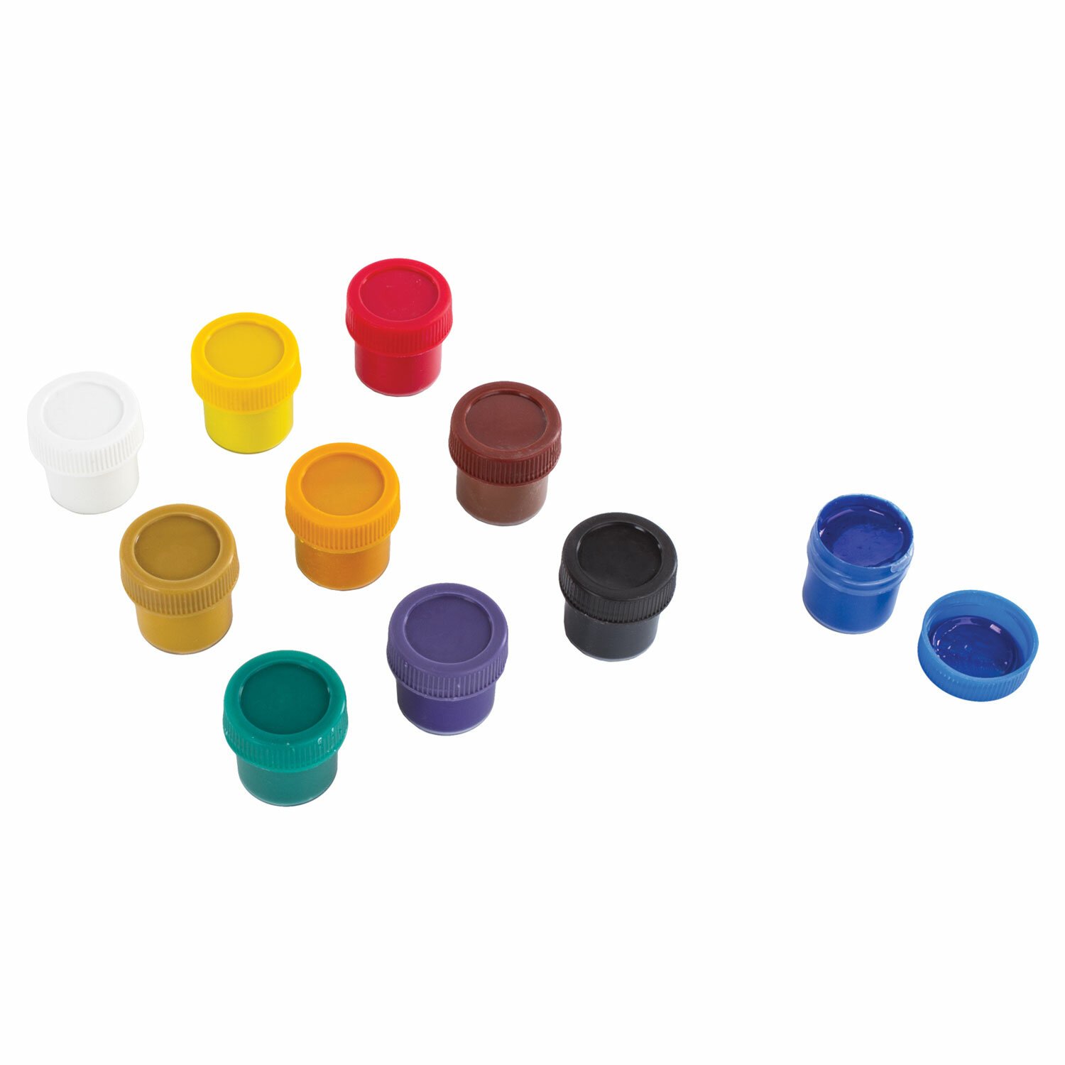 В наборе 10 ярких сочных цветов. Краски полностью безопасны в использовании, не токсичны и не имеют резкого запаха. Гуашь имеет высокую светостойкость и укрывистость, легко размывается водой, хорошо наносится, без труда удаляется с рук и одежды. Краска упакована в пластмассовые герметичные баночки объемом 20 мл. Общий объем гуаши – 200 мл. Ребенок сможет легко открыть баночки с винтовыми крышками без помощи взрослых.